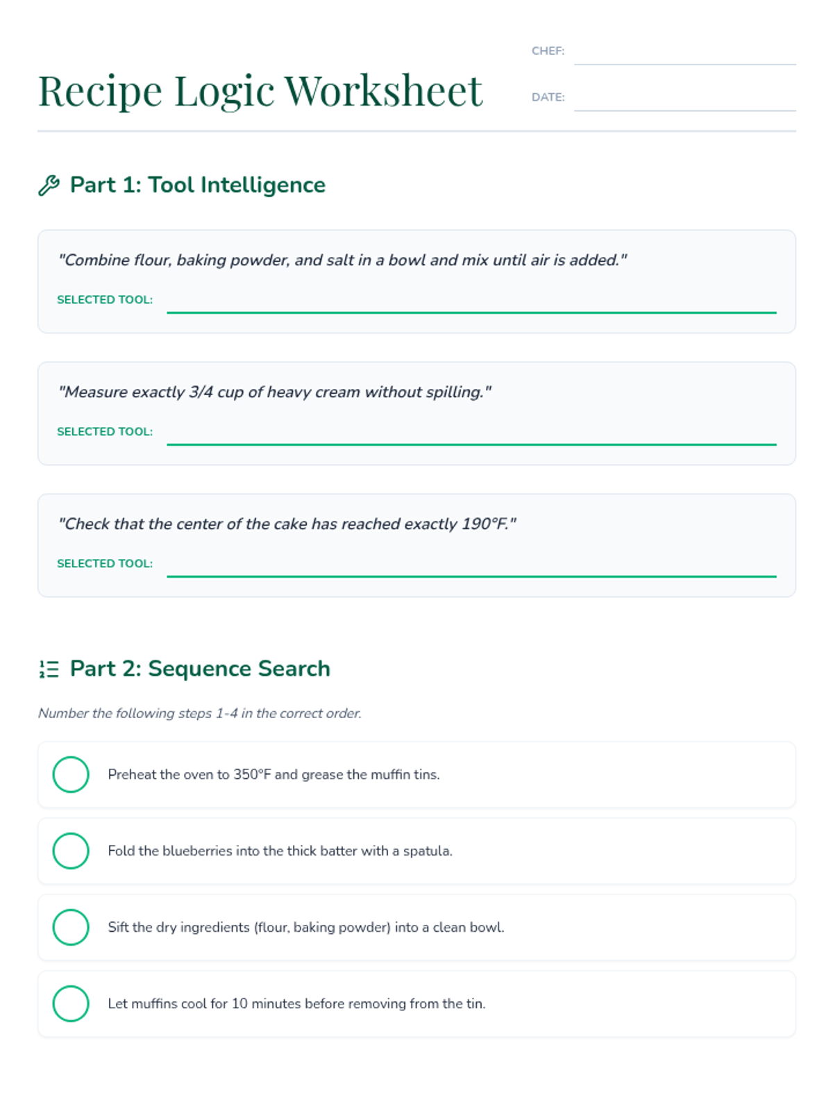 Essential knowledge for identifying hazards, handling tools safely, and maintaining a hygienic cooking environment through visual checklists and simulations.