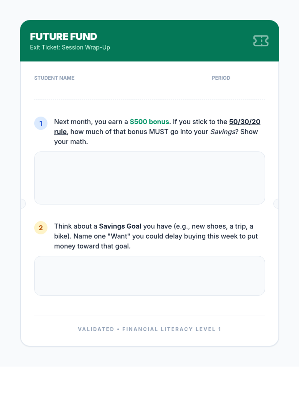 A practical financial literacy lesson designed to empower students with unstable housing to manage small amounts of money and plan for a more secure future.