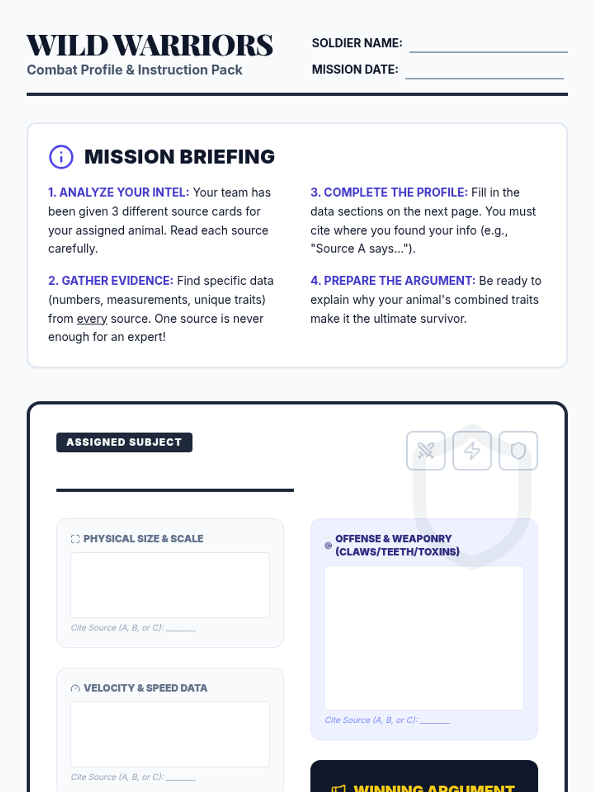 Students will learn how to synthesize information from multiple texts to build a strong, evidence-based argument through a 'Battle of the Animals' competition.