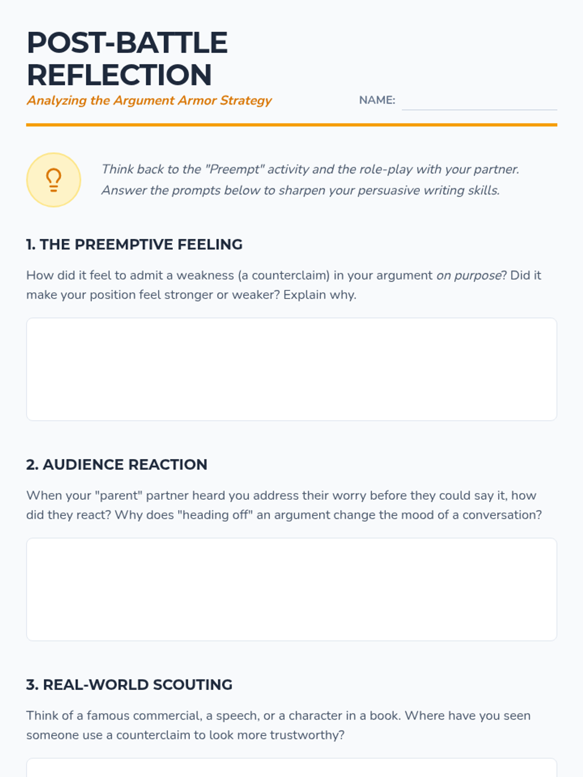 A dynamic lesson for middle schoolers to master the art of the counterclaim, using the 'preemptive strike' strategy to win arguments through logic and audience awareness.