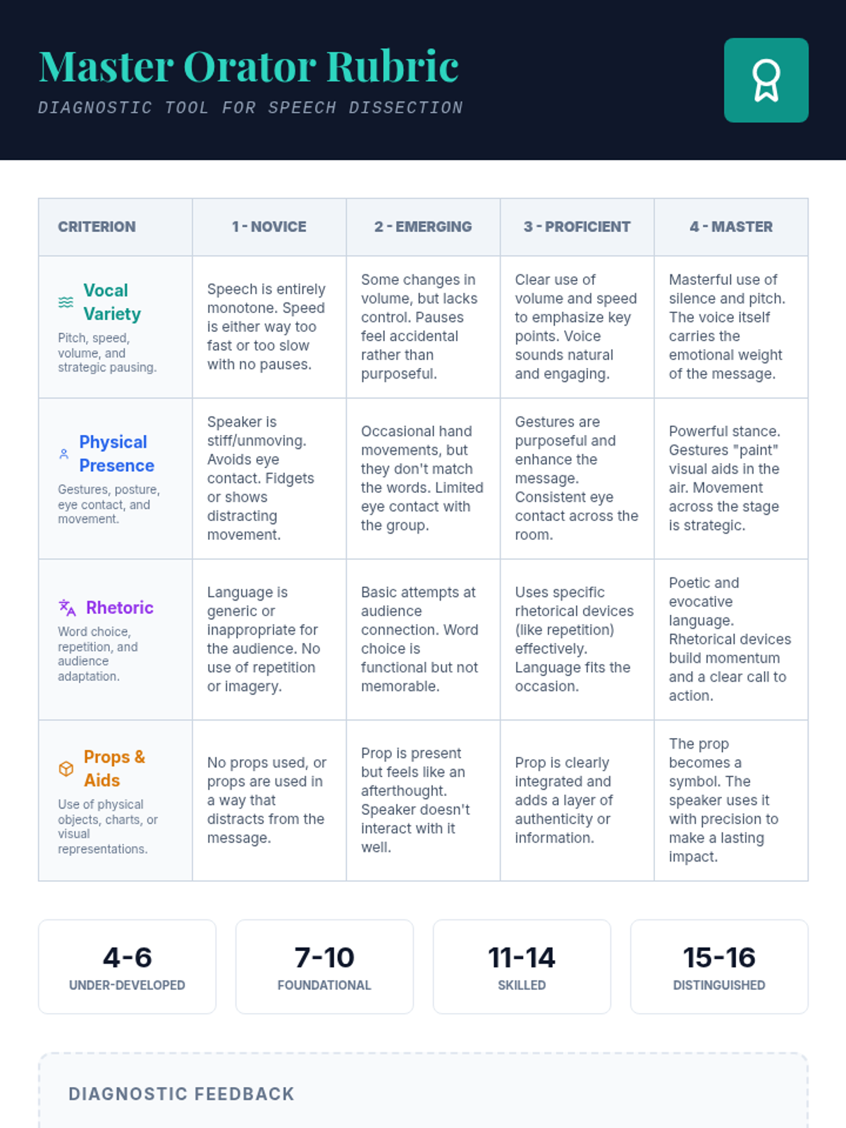 Students analyze the impact of vocal variety, physical presence, and rhetorical devices on public speaking effectiveness using a Khan Academy case study and a structured delivery checklist.