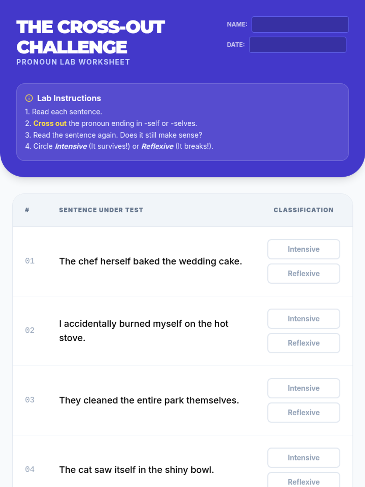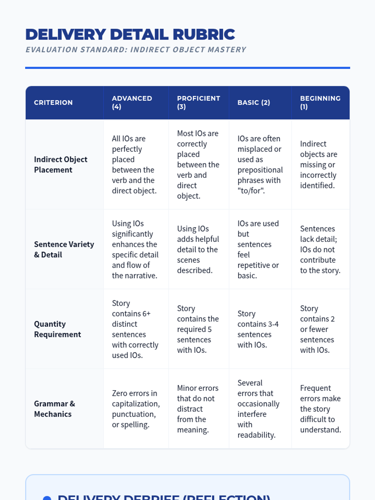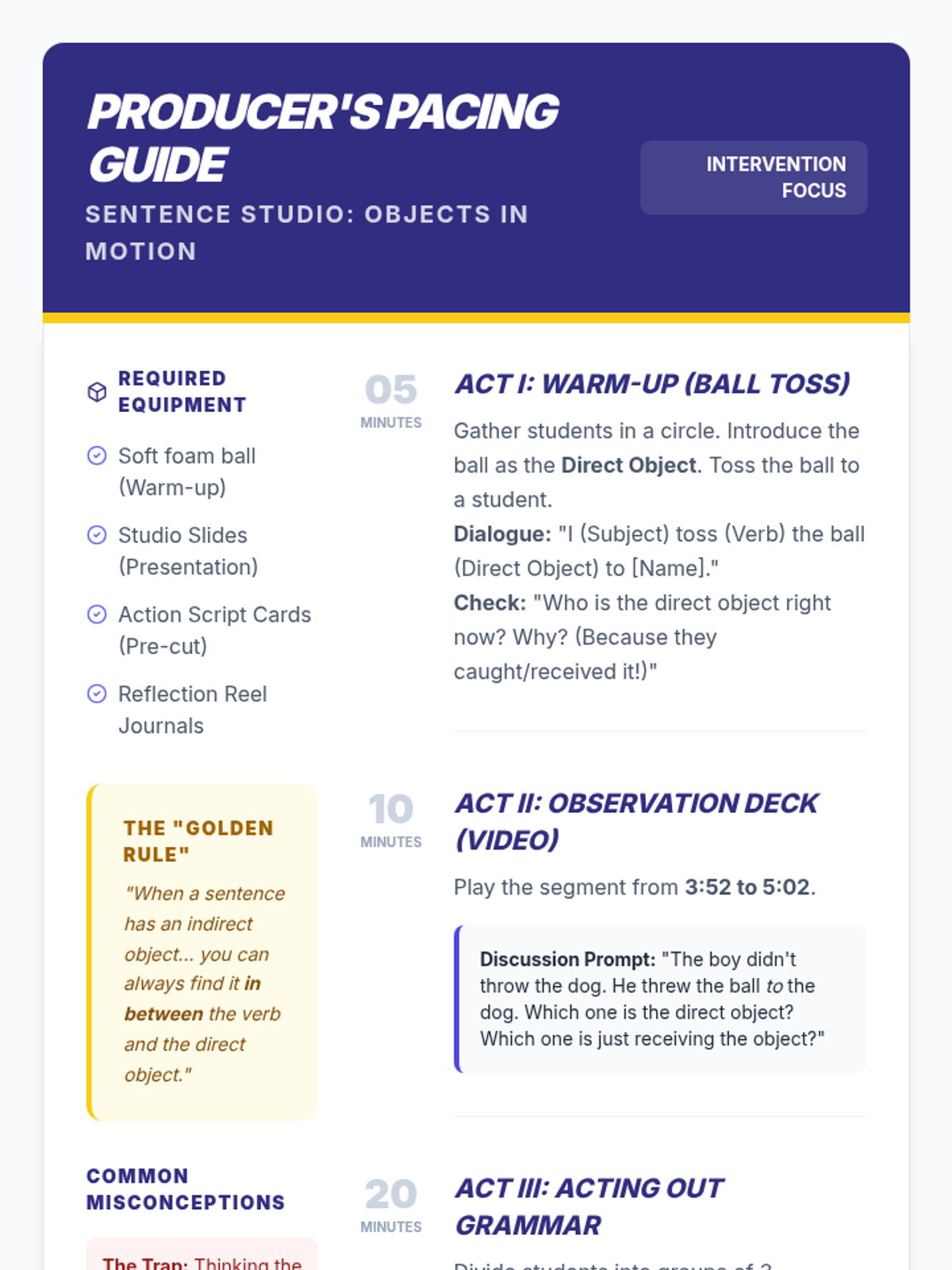 A kinesthetic grammar lesson for 6th-8th grade intervention students to master direct and indirect objects through movement and role-play.