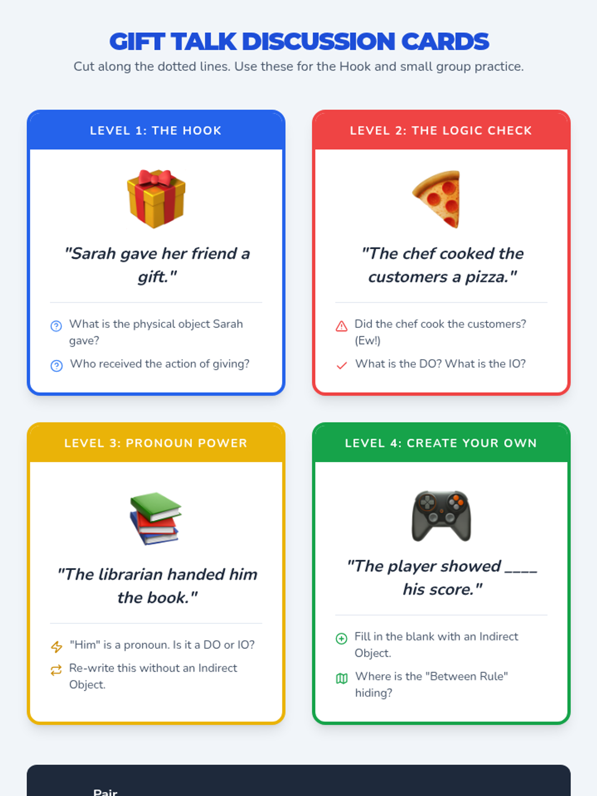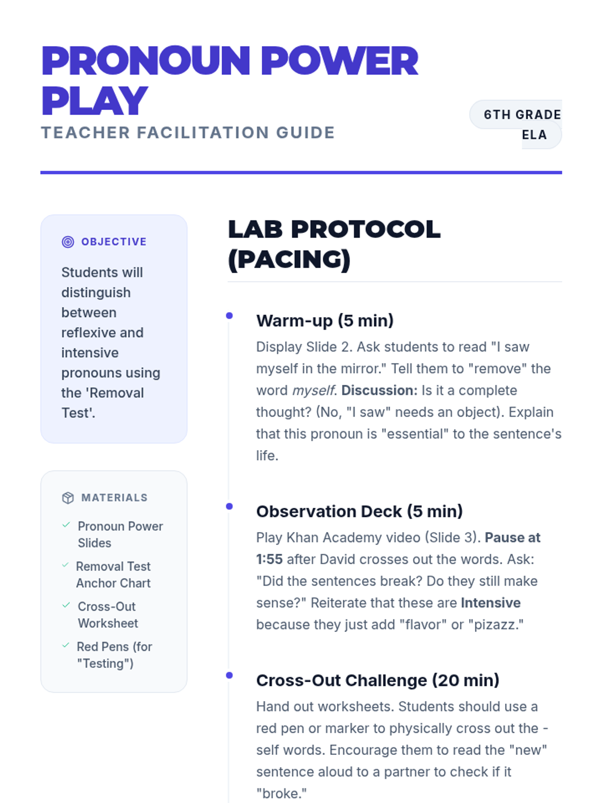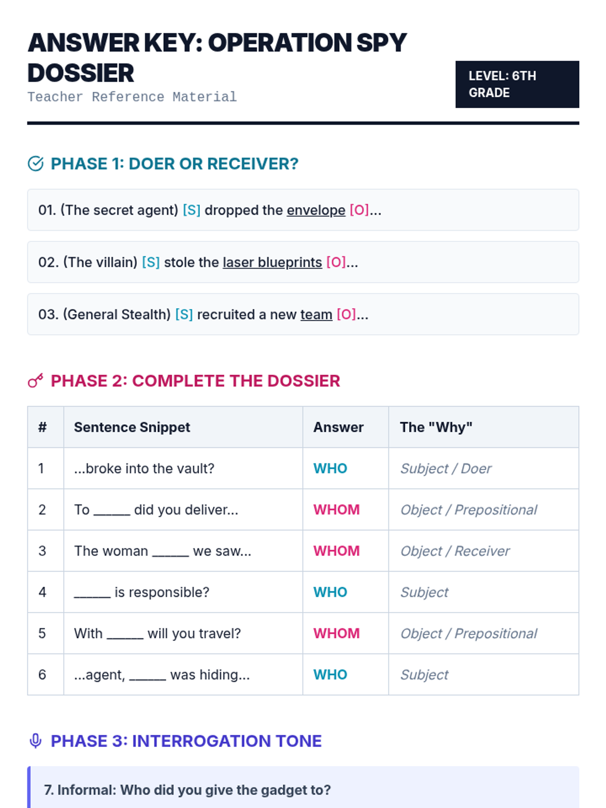 A high-energy 6th-grade lesson that uses the 'between' rule and a superhero metaphor to help students distinguish between direct and indirect objects. Includes a video analysis and a creative 'interrupter' game for hands-on practice.