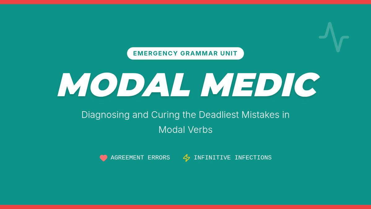 Students become 'Grammar Doctors' to diagnose and treat common modal verb errors, focusing on agreement and the 'illegal' infinitive form. The lesson includes a video deep-dive, a surgical worksheet activity, and a creative dialogue extension.