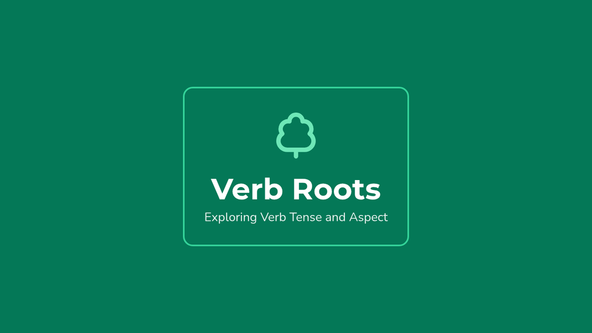 A middle school ESL lesson focused on understanding verb aspects through visual mapping. Students use a 'Verb Tree' metaphor to distinguish between simple tenses and the nuances of ongoing or completed actions.