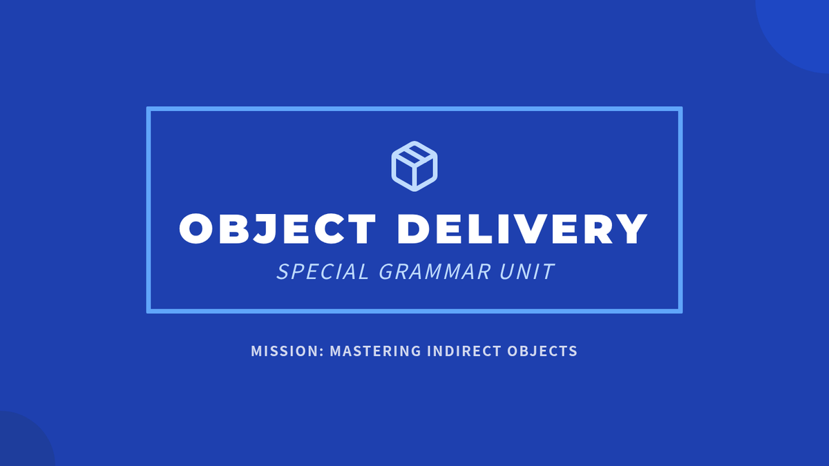 A comprehensive grammar lesson focusing on indirect objects using a 'Postal Delivery' theme. Students learn to identify and construct sentences where the indirect object sits between the verb and the direct object to enhance writing detail.