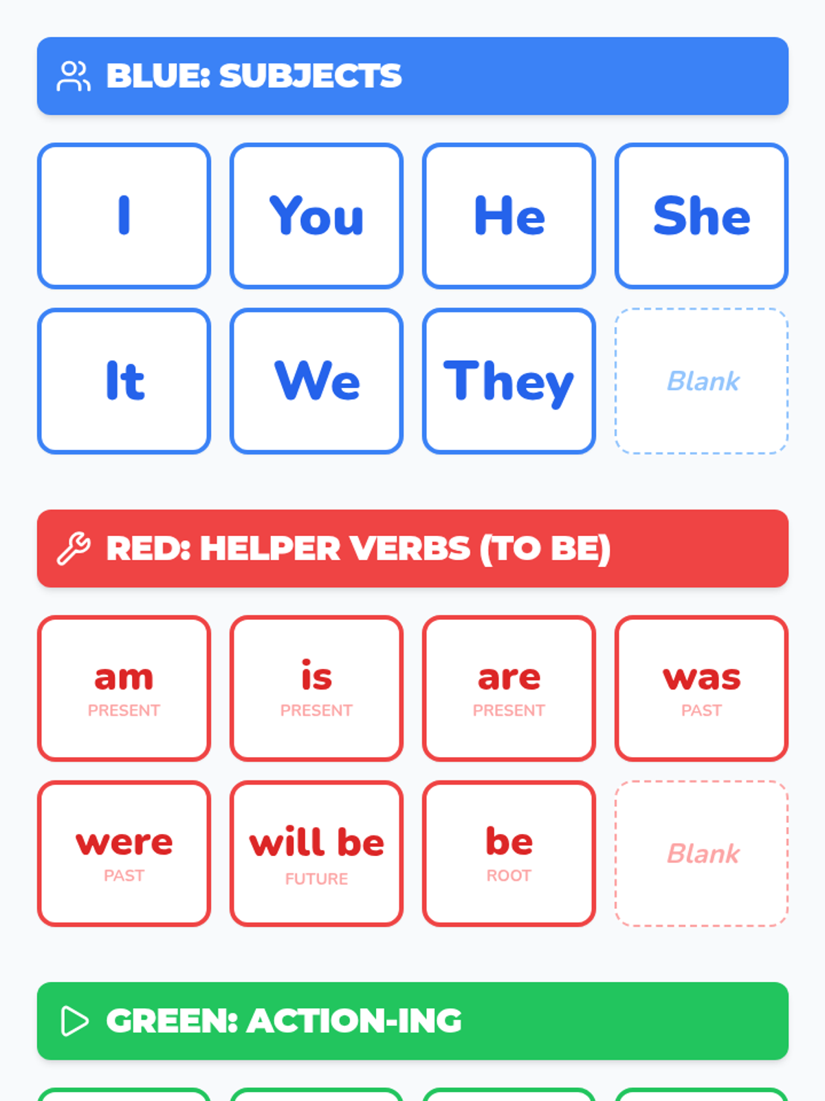A lesson focused on the progressive aspect and the 'to be' helper verb, helping ESL/Intervention students master oral fluency and sentence construction through color-coded practice.