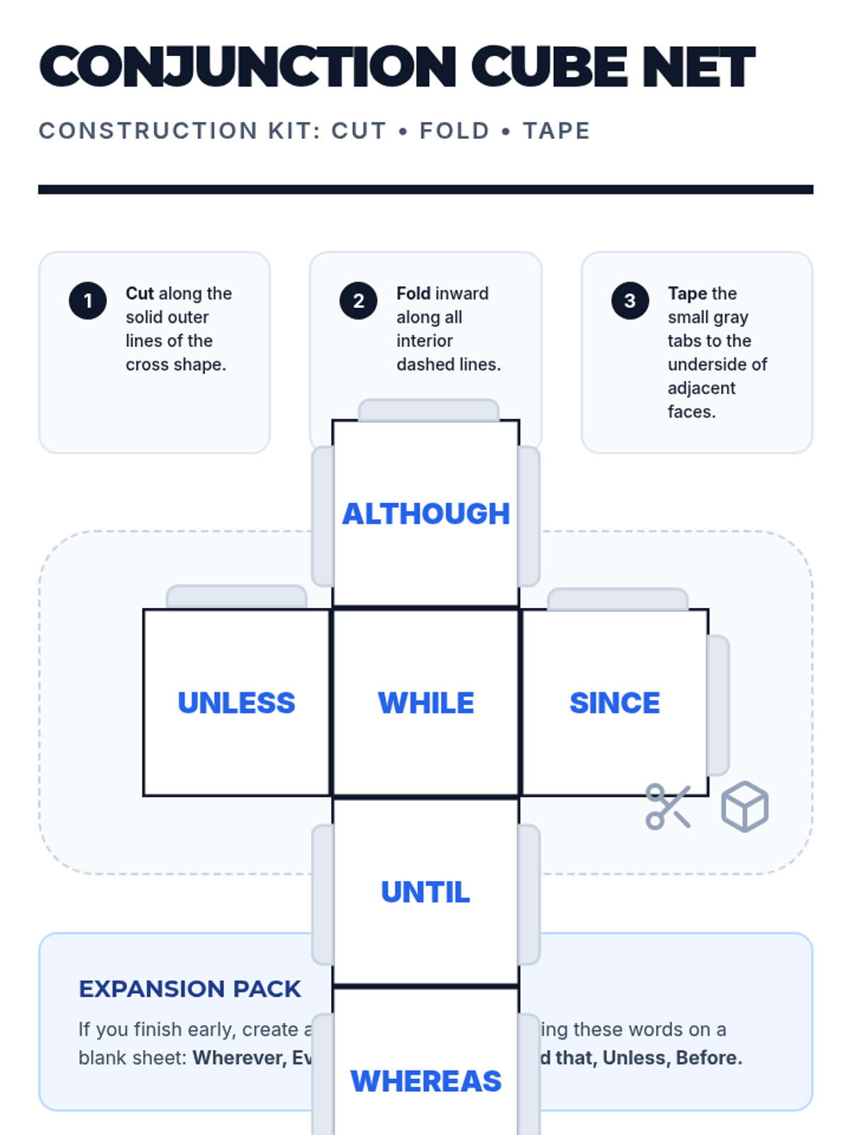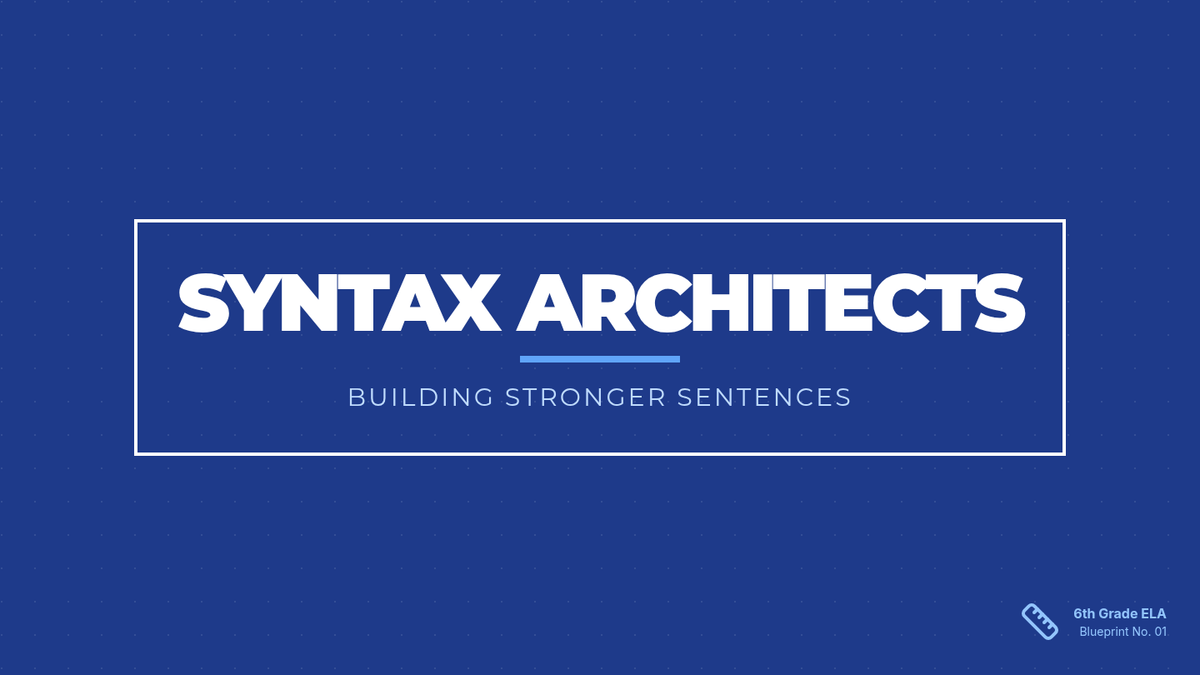 Students explore syntax by expanding simple subjects and predicates into complex sentences, using a 'building box' metaphor inspired by Khan Academy. The lesson includes a presentation for the whiteboard, a hands-on expansion worksheet, and a teacher's guide for facilitating the expansion rounds.