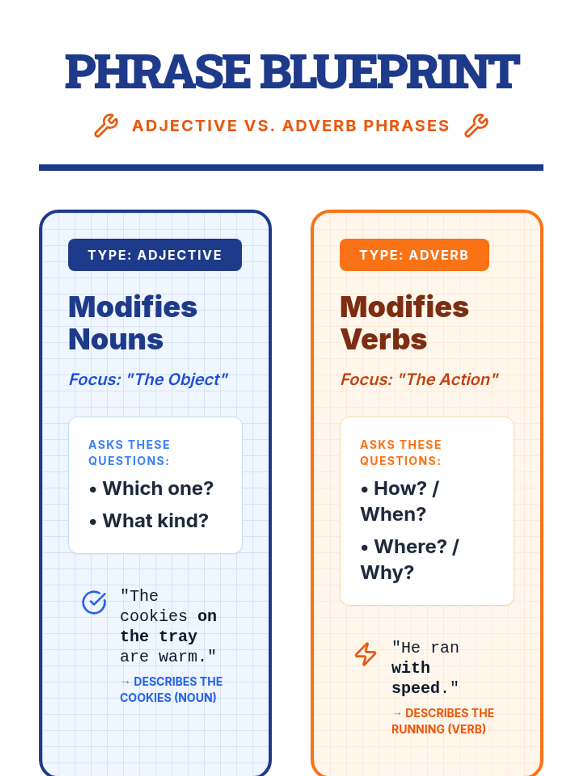 Students focus specifically on prepositional phrases acting as modifiers. They practice moving these phrases to different spots in a sentence to see which position makes the most logical sense.