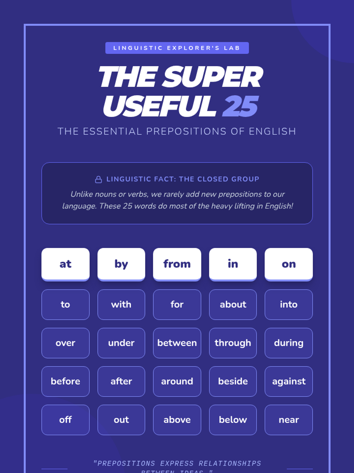 A lesson for 4th-6th graders on spatial prepositions, focusing on the concept of 'closed groups' in linguistics and using a 3-panel comic arc to demonstrate movement and location.
