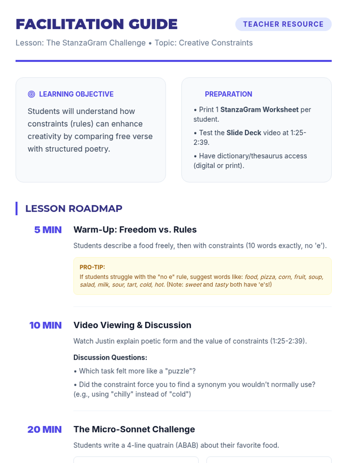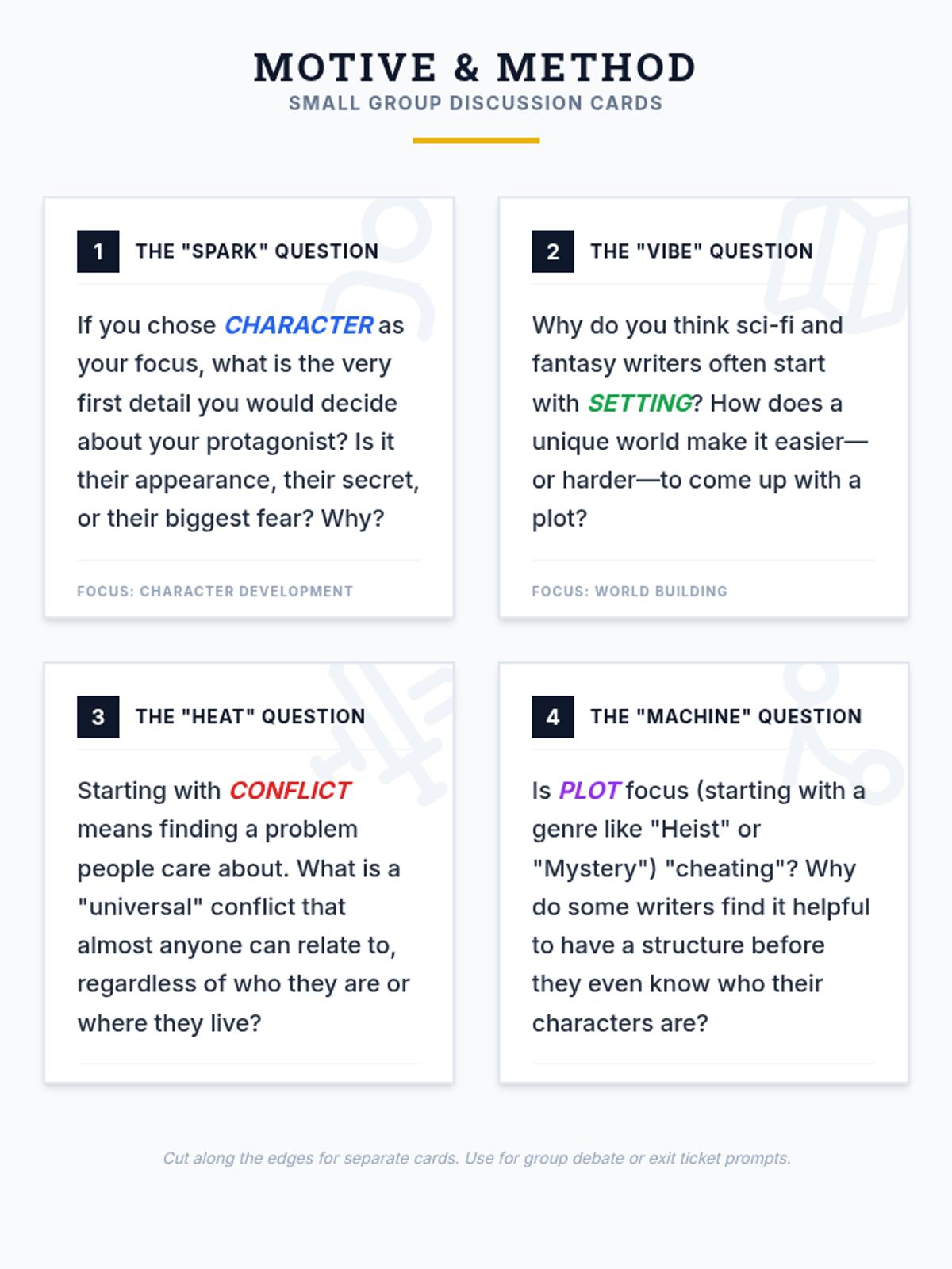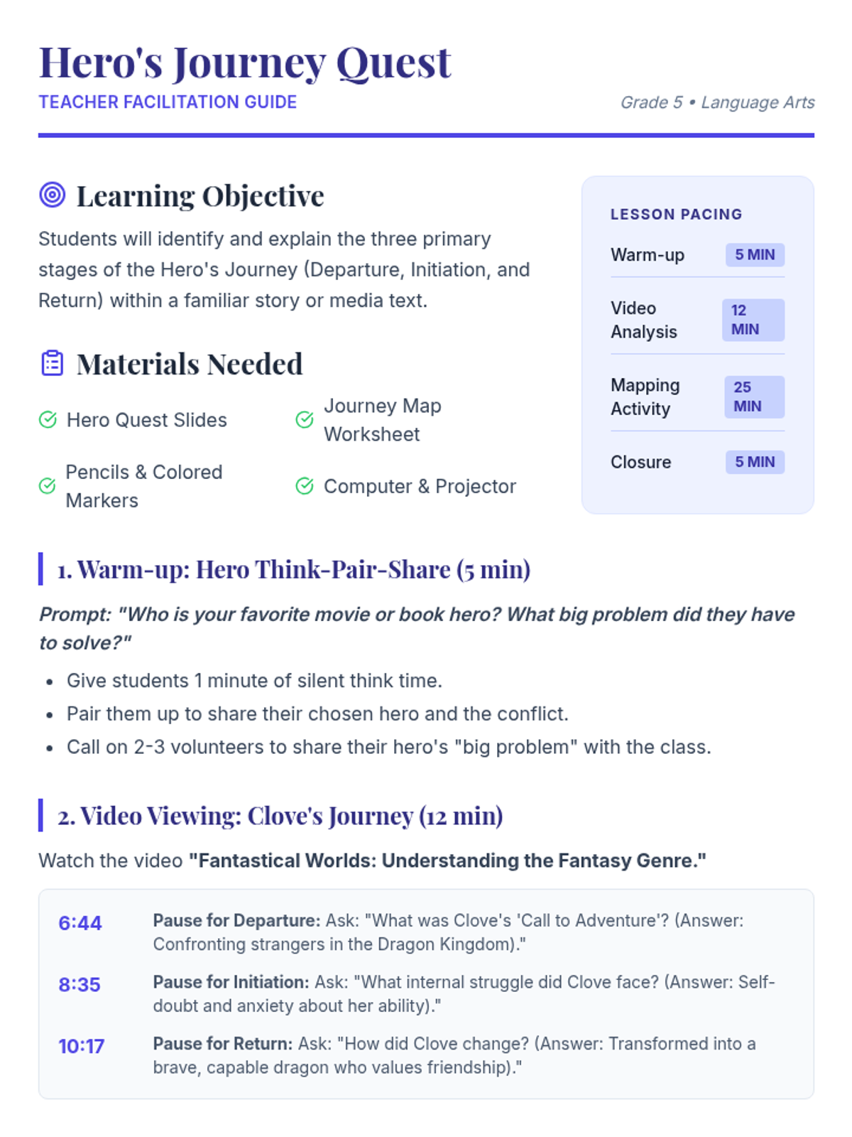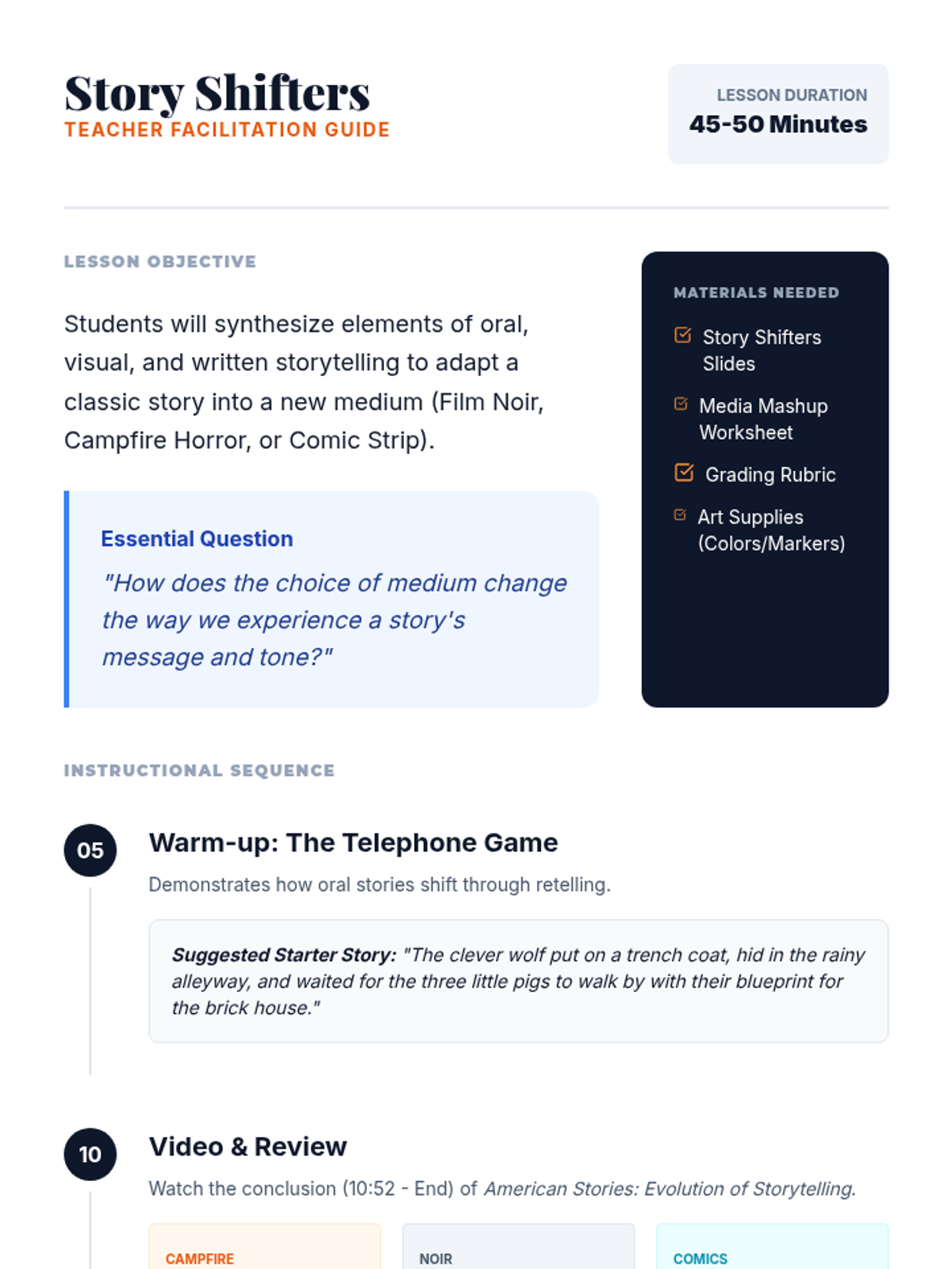 Students will learn how to organize and deliver an effective informational pitch about a literary genre, using a 3-slide storyboard structure to plan their presentation. This lesson connects to the 'Genre Reflections' video and culminates in a small-group pitch session.