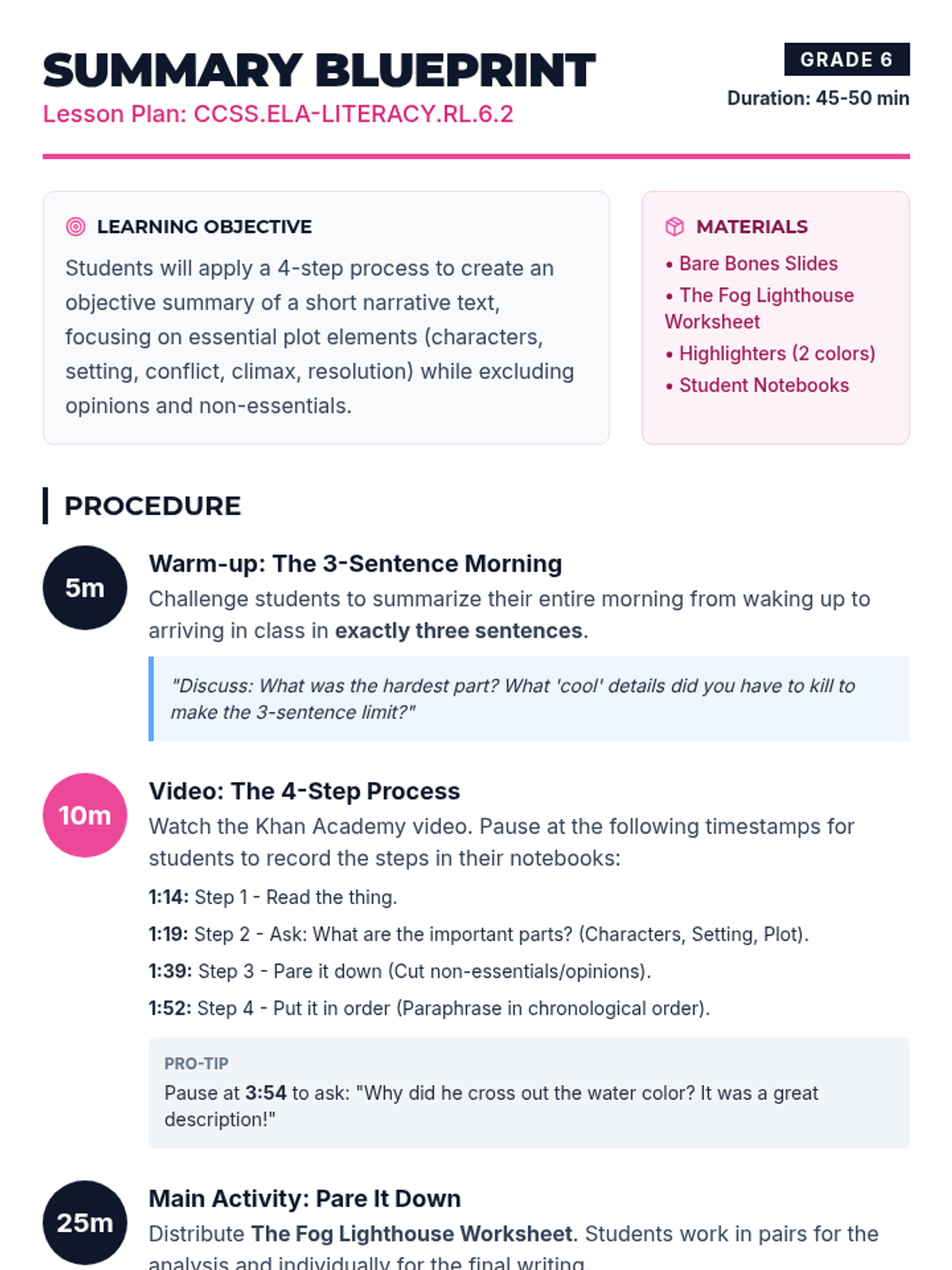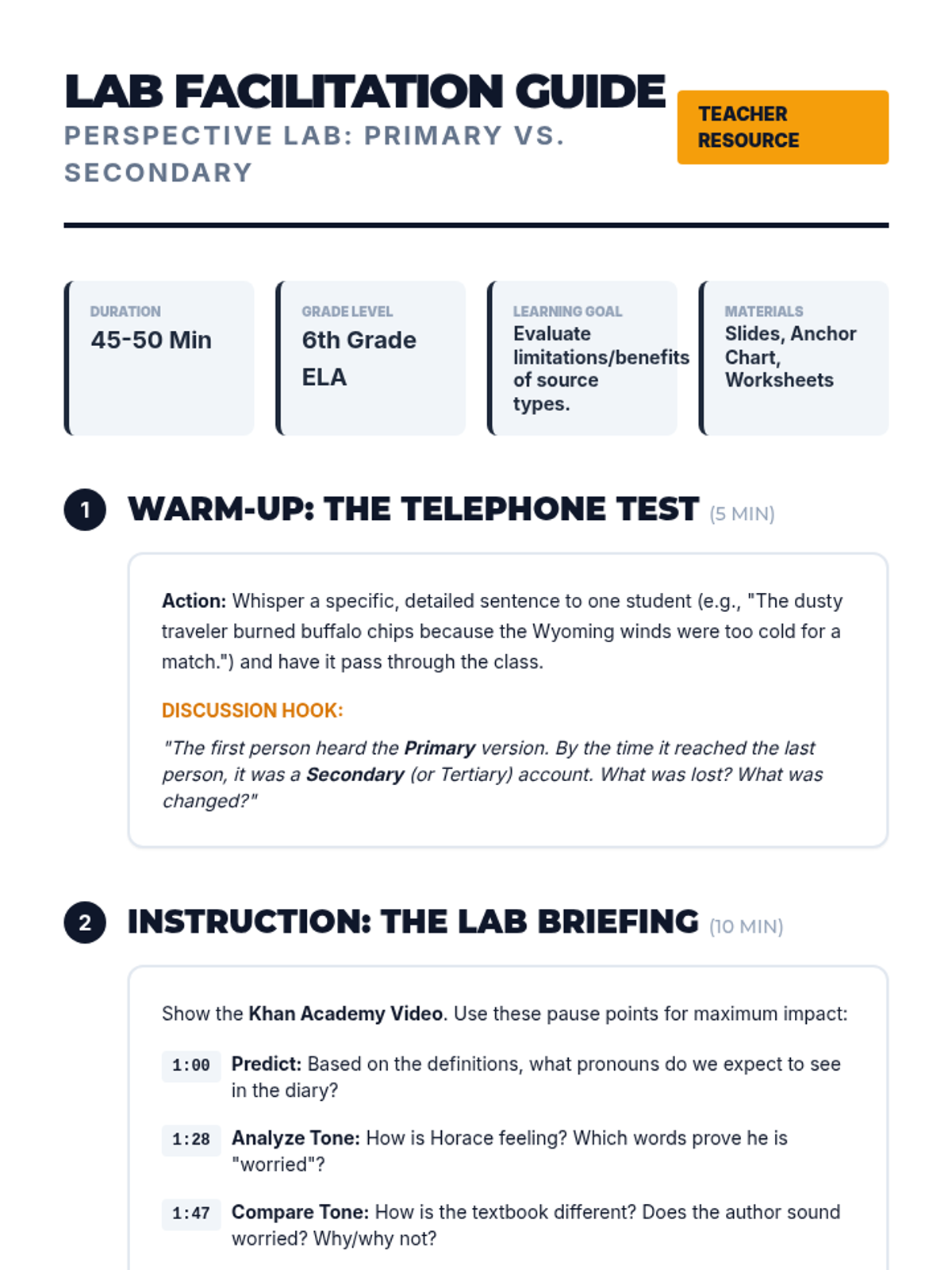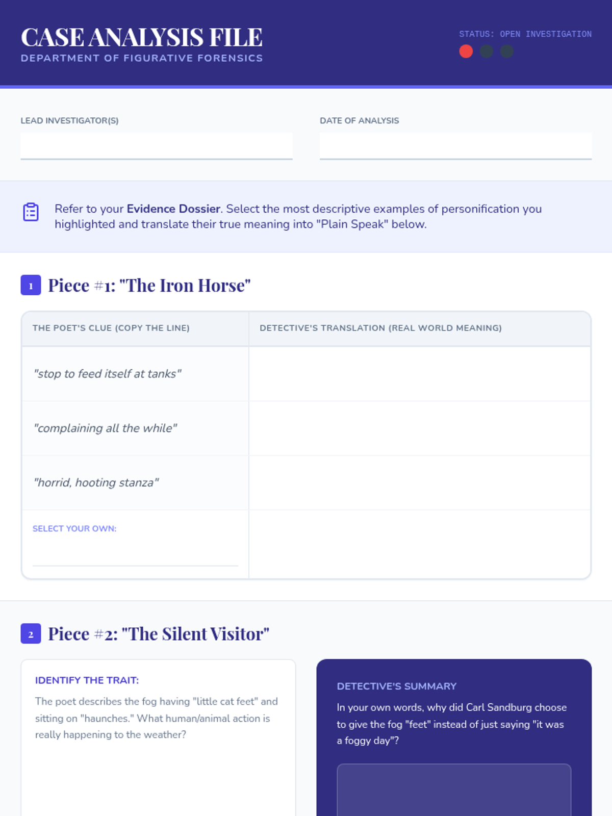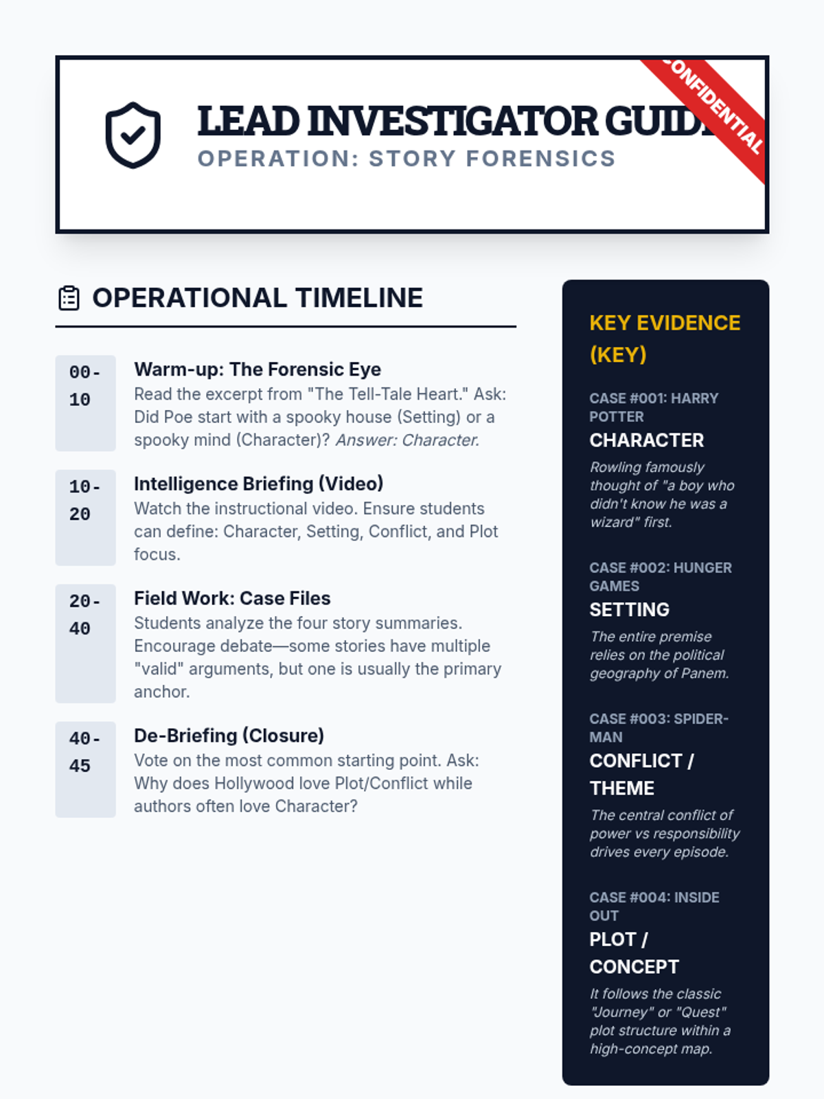 A fast-paced 30-minute lesson where students learn to identify and cite specific textual evidence from informational texts using the 'Case File' investigative method.
