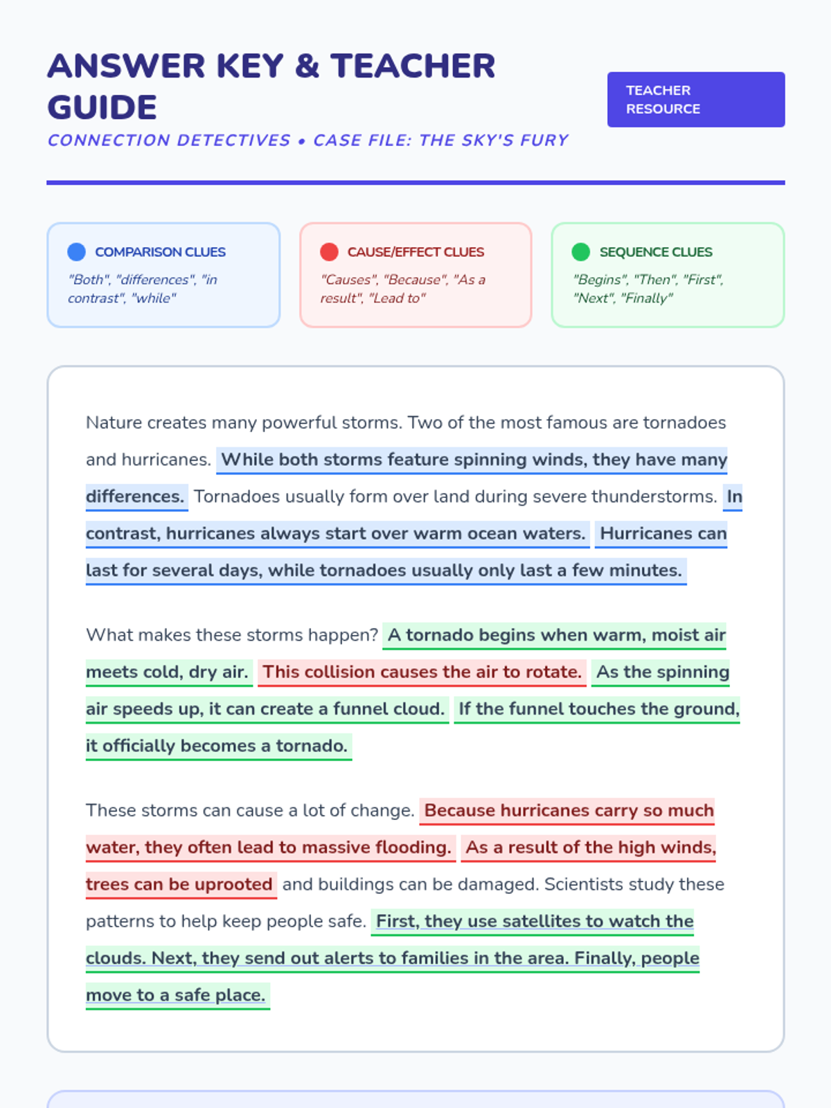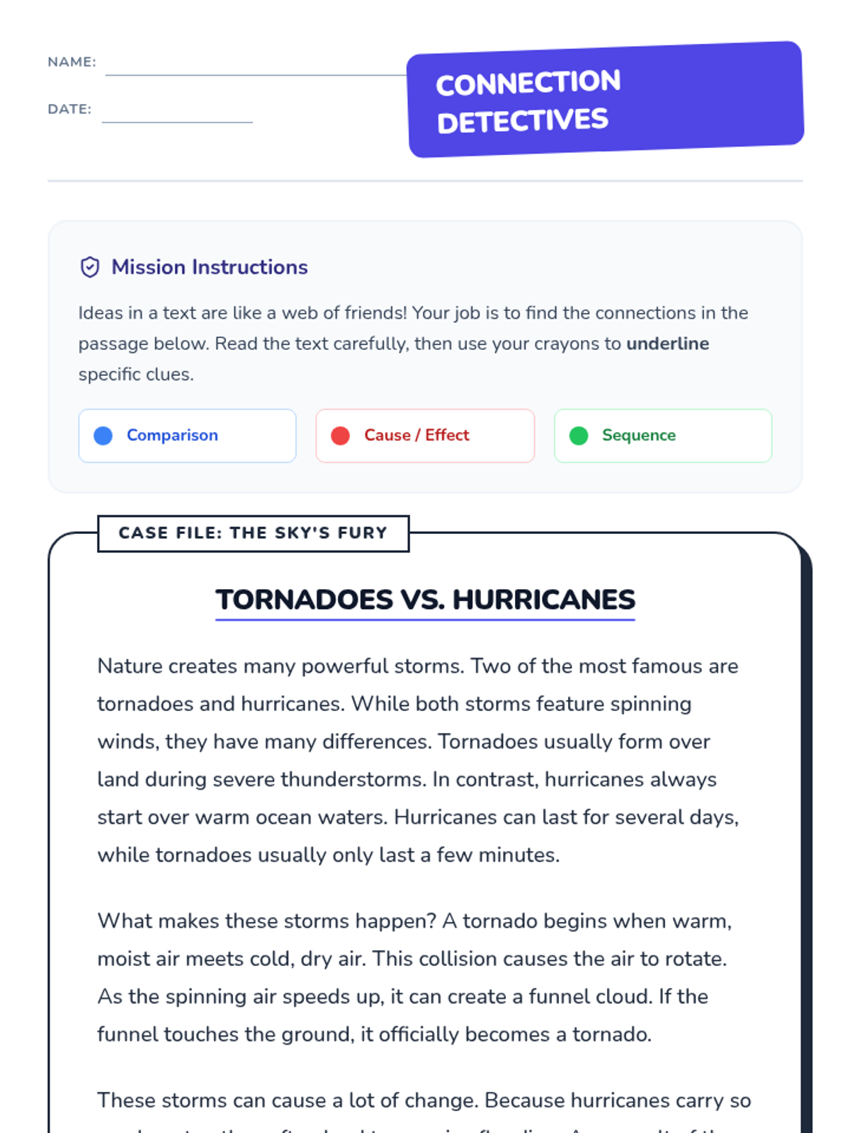 Main IdeaIdentification of central messages and supporting details within informational and narrative texts. Strengthens summarization skills and the ability to distinguish primary points from secondary evidence.