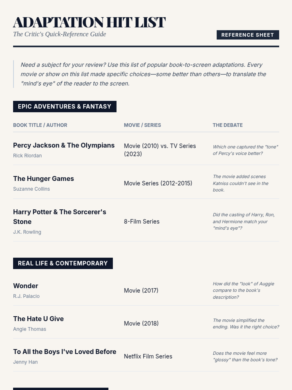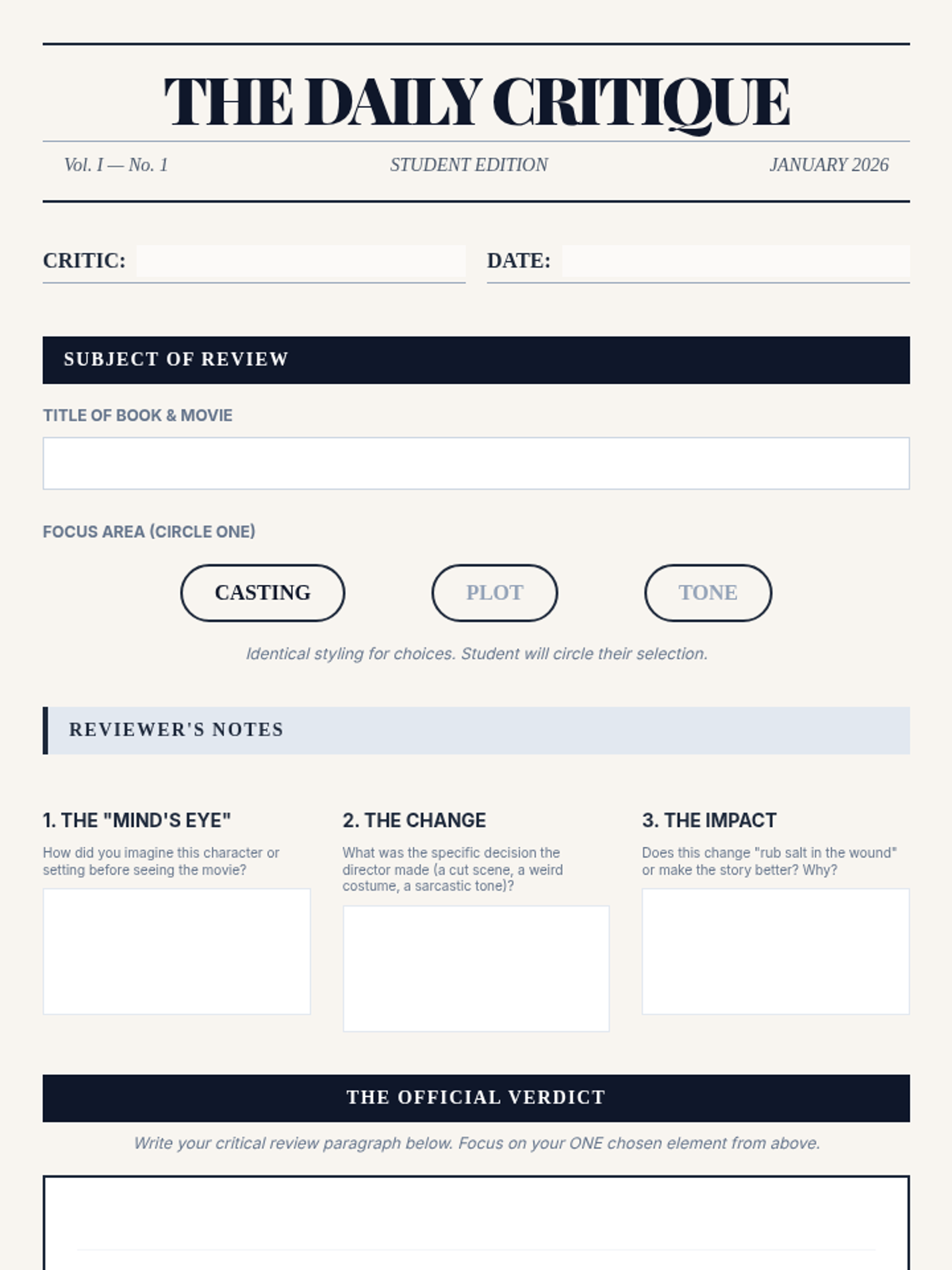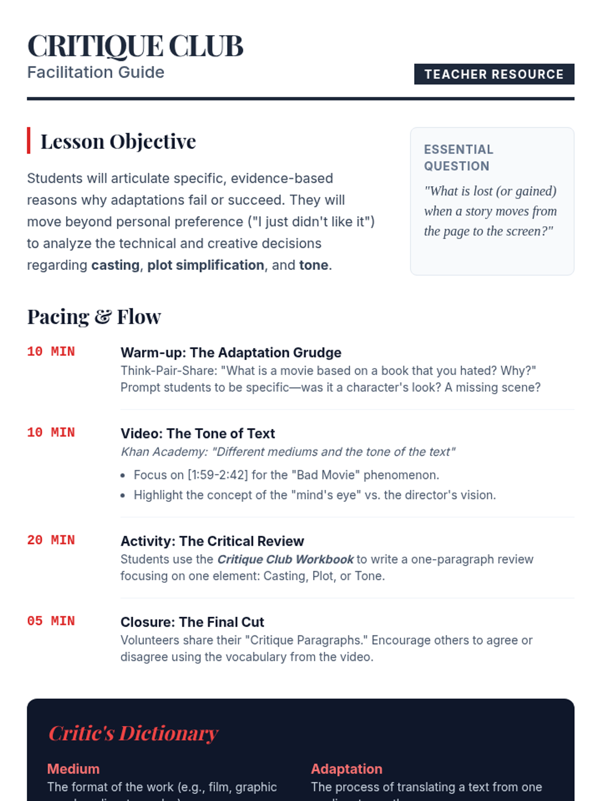 Comparing TextsTechniques for identifying similarities and differences in perspective, structure, and theme across diverse genres. Equips students to synthesize information and evaluate how different mediums approach shared topics.