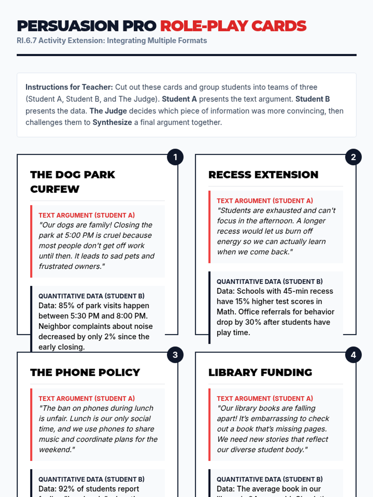 A comprehensive lesson on building strong argumentative essays, focusing on thesis construction, evidence integration, and addressing counter-arguments through the 'Debate Lab' theme.
