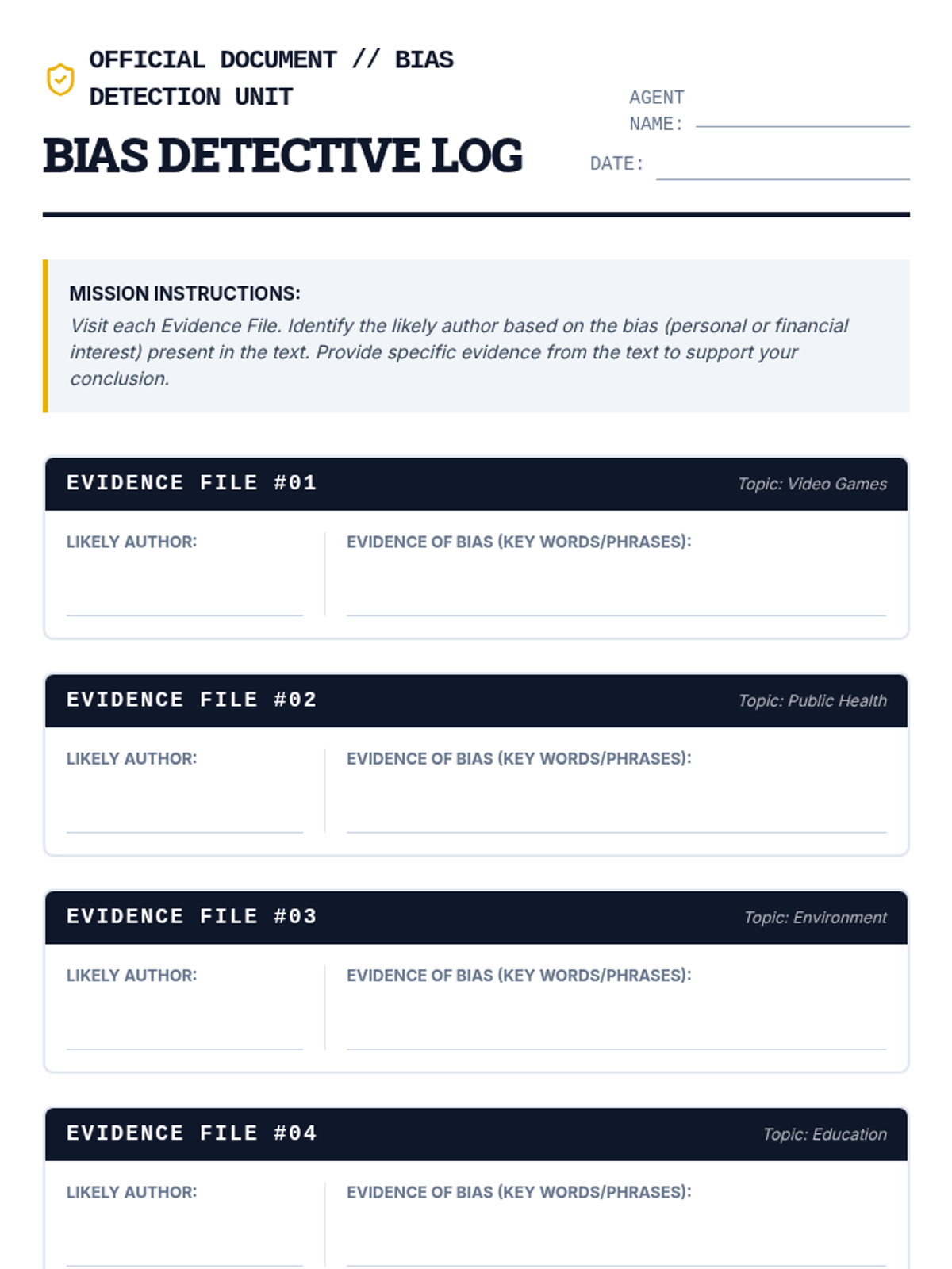 Students investigate how financial and personal interests create bias in informational texts. They learn to identify 'Conflict of Interest' and 'Lobbying' through a video analysis and a 'Who's the Author?' gallery walk activity.