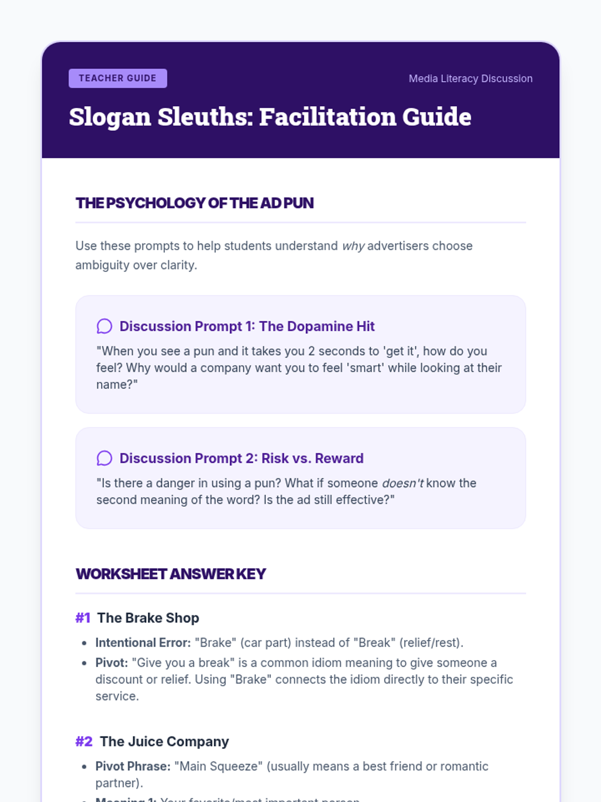 Students explore how advertisers use puns and wordplay to make slogans memorable and persuasive.