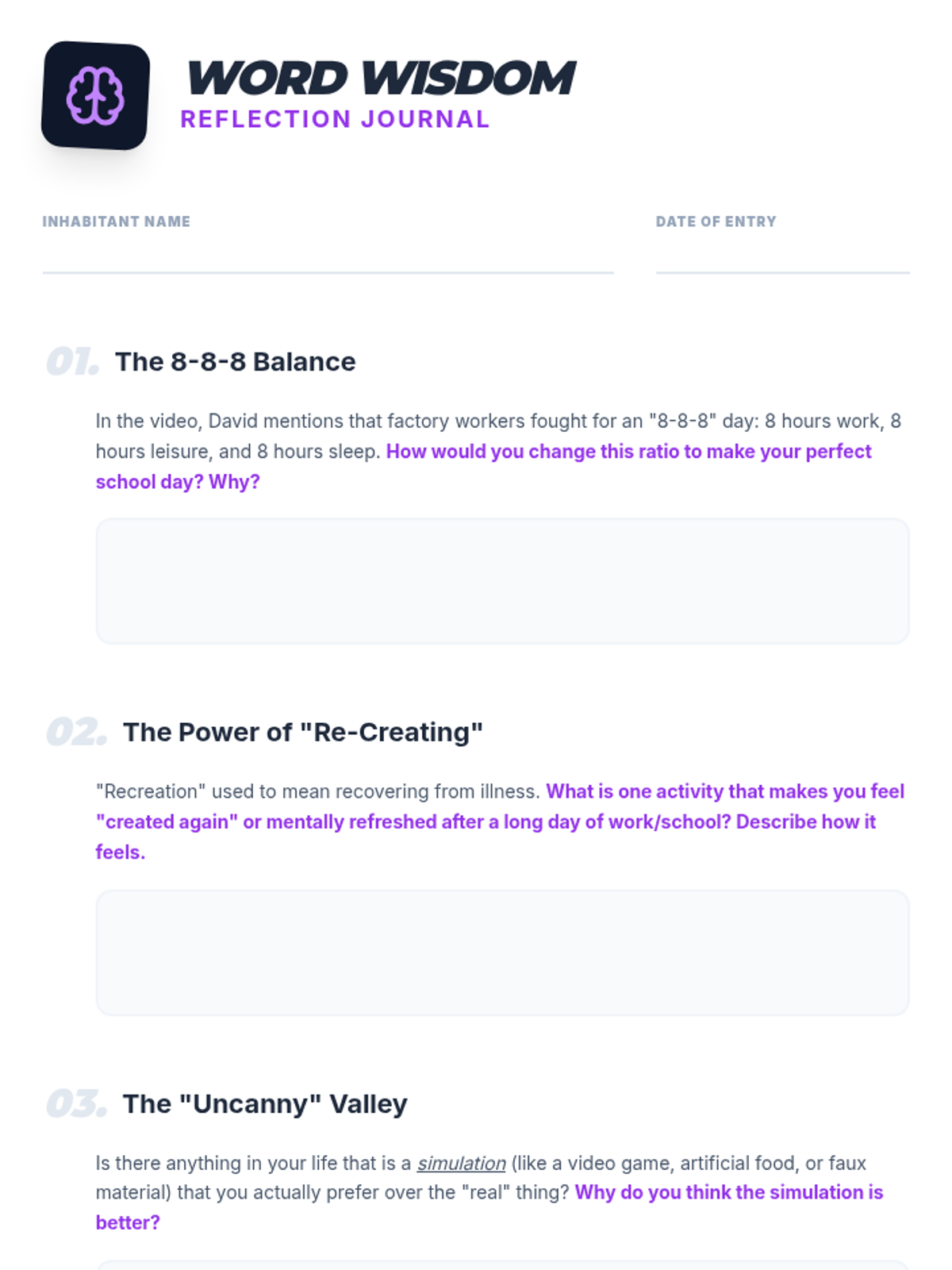 A vocabulary-focused lesson for 6th graders exploring the nuances of 'simulate,' 'leisure,' and 'recreation' through creative writing and illustration. Students will analyze the etymology and historical context of these words before crafting 'wacky' sentences and participating in a gallery walk.