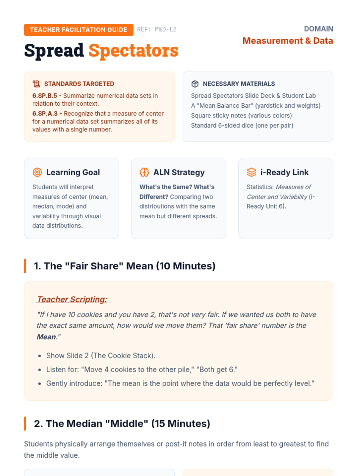 Interprets measures of center (mean, median, mode) through data visualization and 'What's the Same? What's Different?' statistical talks.