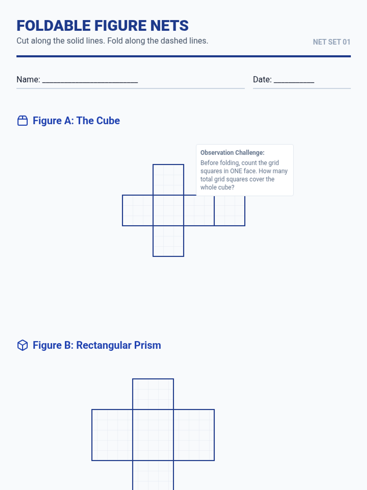 Connects 2D representations to 3D volumes by exploring nets of prisms and pyramids to calculate surface area conceptually.