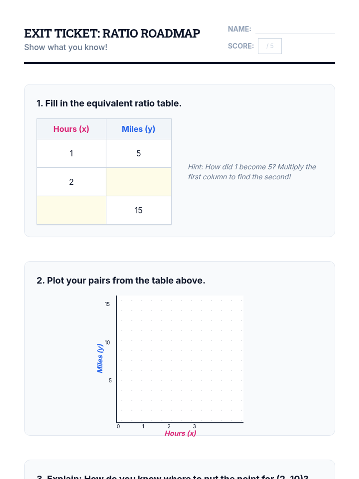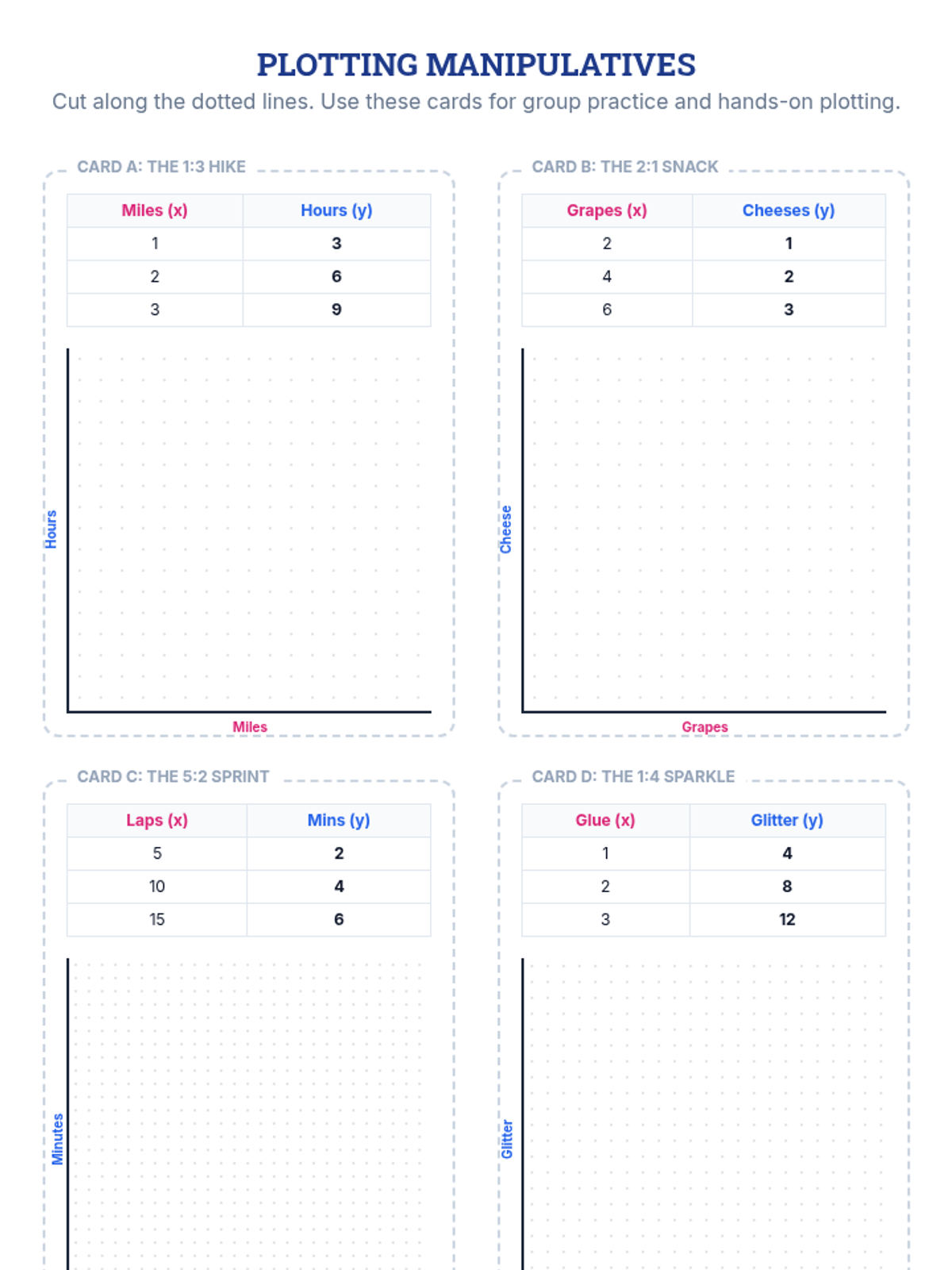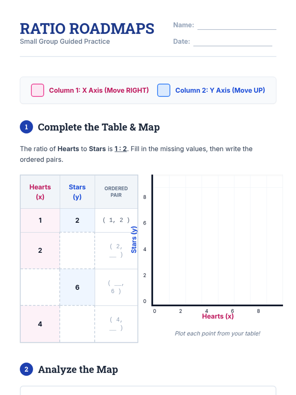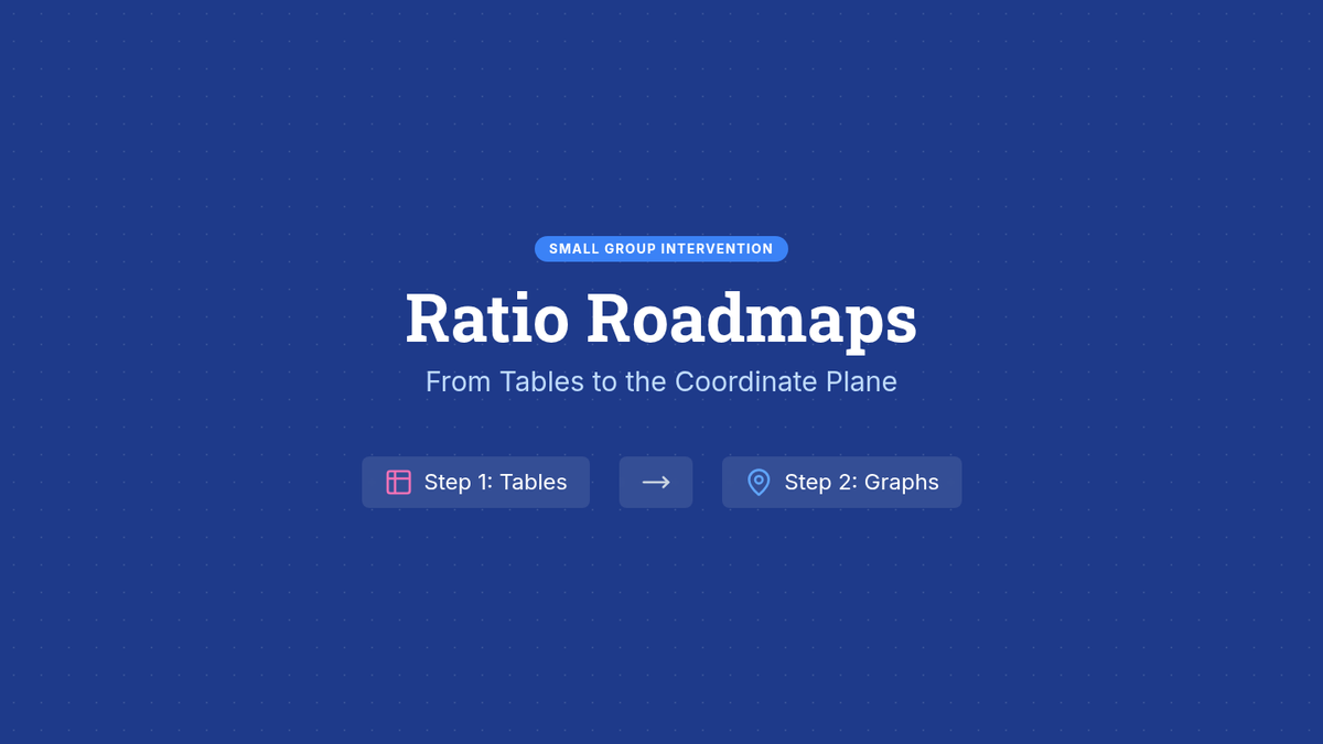 A Tier 2 small group intervention focused on connecting equivalent ratio tables to coordinate plane plotting. Students use color-coded cues to bridge the gap between numerical relationships and visual representations.