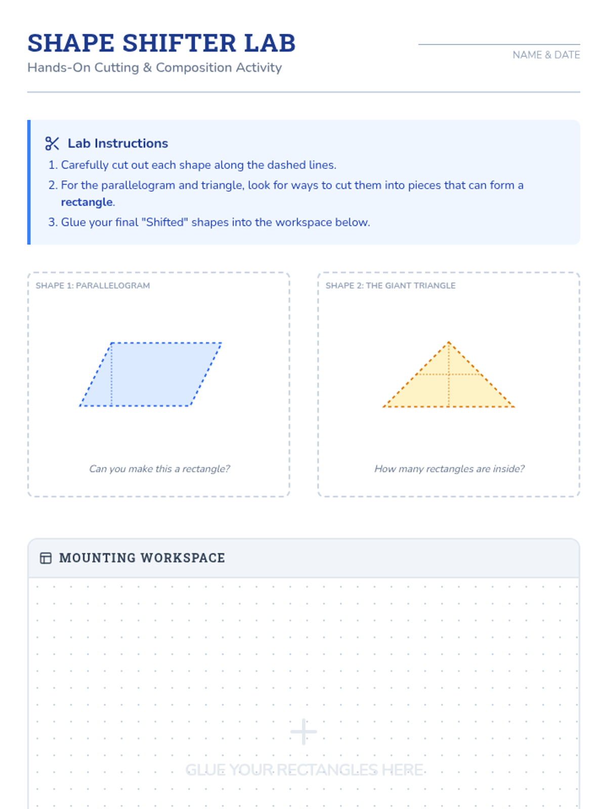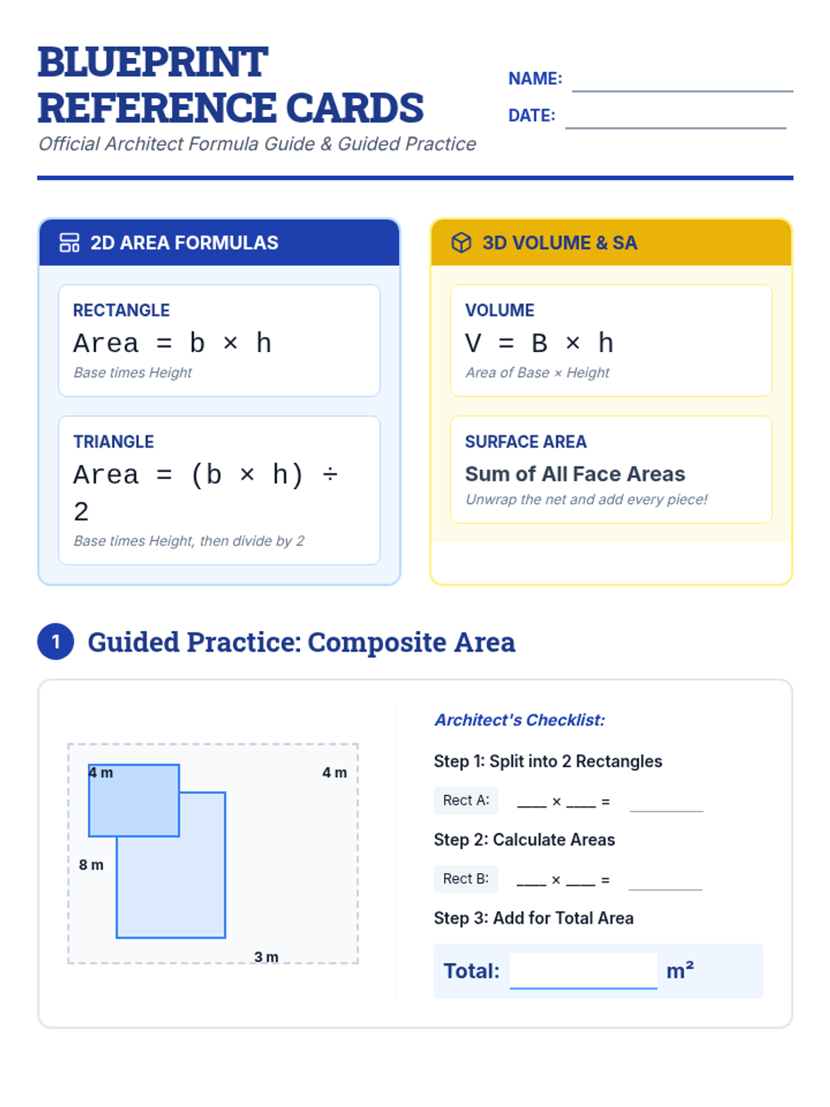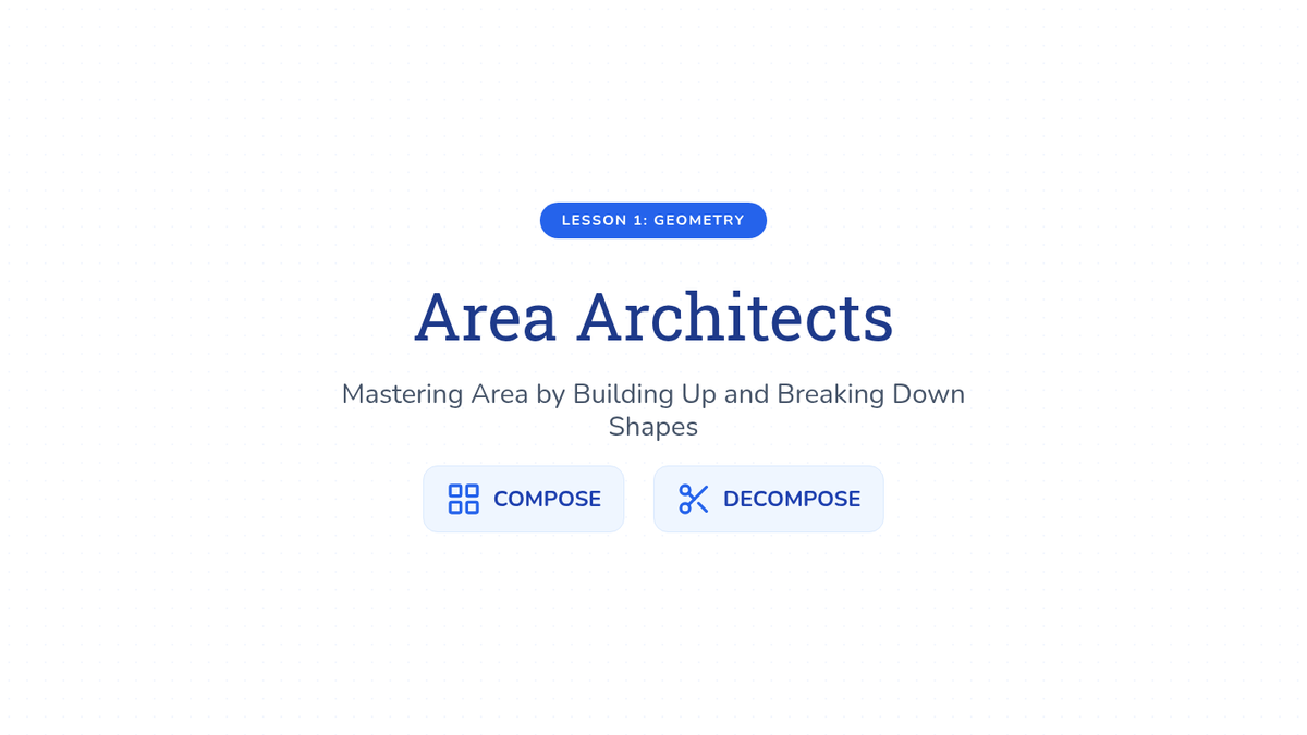 A targeted Tier 2 intervention lesson focusing on calculating the area, surface area, and volume of 2D and 3D composite shapes. This lesson uses hands-on building, visual formulas, and scaffolded practice to bridge gaps in geometric understanding.