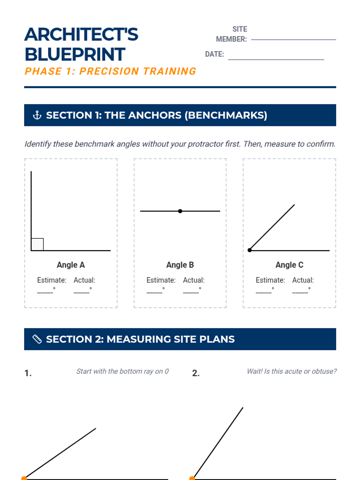A Tier 2 intervention lesson focused on measuring and drawing angles using a protractor. Students explore benchmark angles (90, 180, 45) before progressing to more complex measurements through scaffolded practice and a collaborative partner activity.