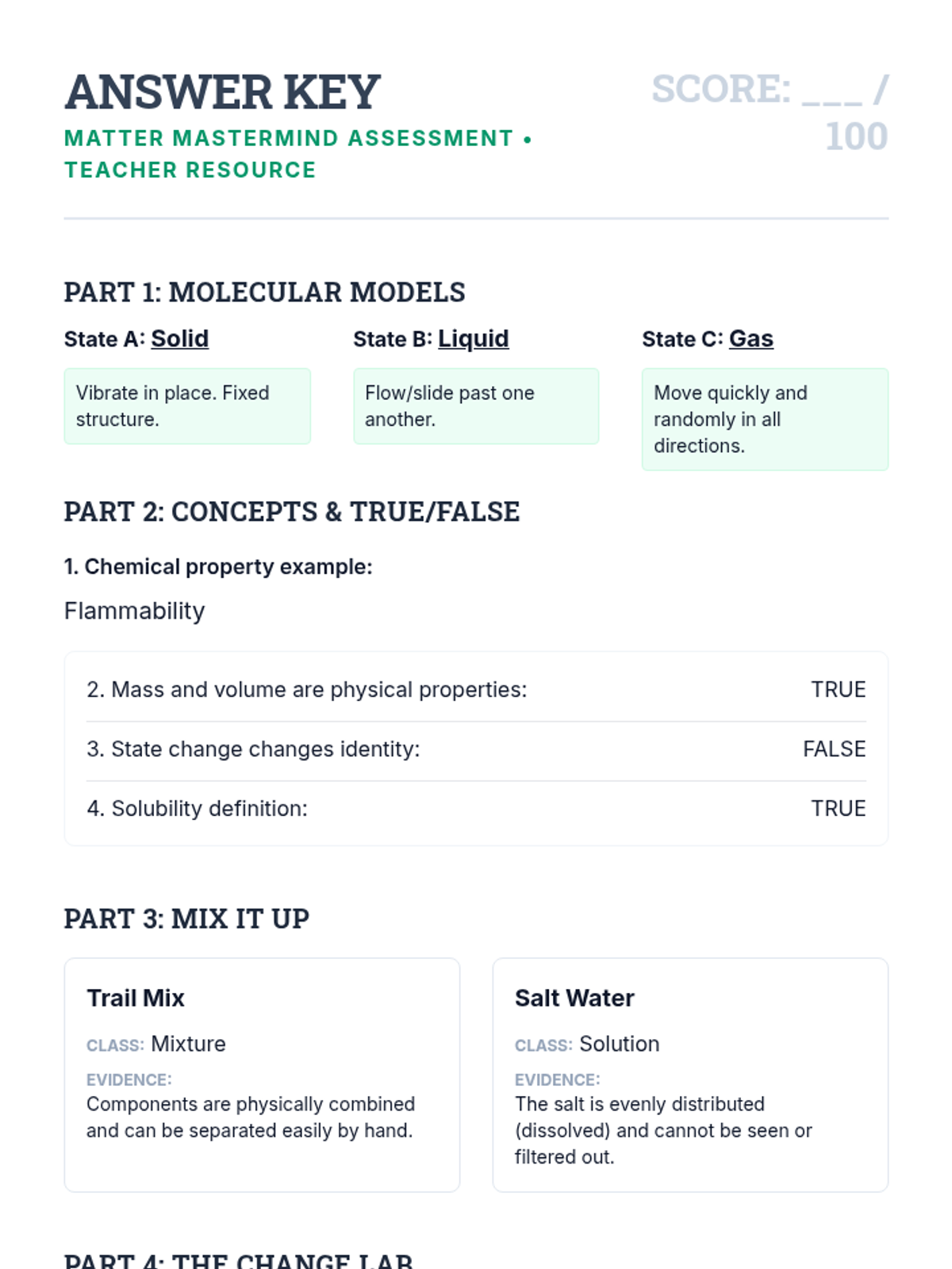 Students will explore how the mass of a substance remains constant even as it undergoes phase changes (freezing, melting, boiling). They will analyze data involving state changes and evaluate scientific claims about matter 'disappearing' during evaporation.