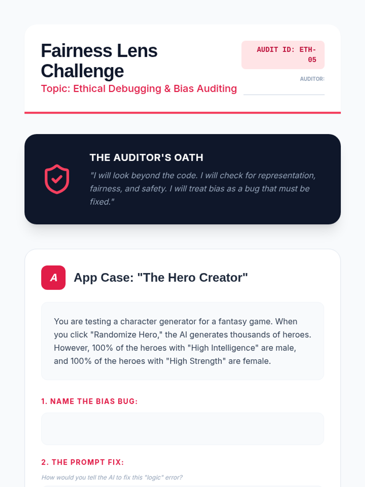 Students discuss non-technical 'bugs' such as bias in generated content or unsafe outputs. They learn to evaluate AI generations for fairness and appropriateness.