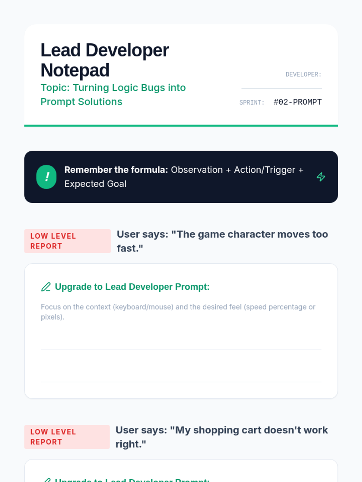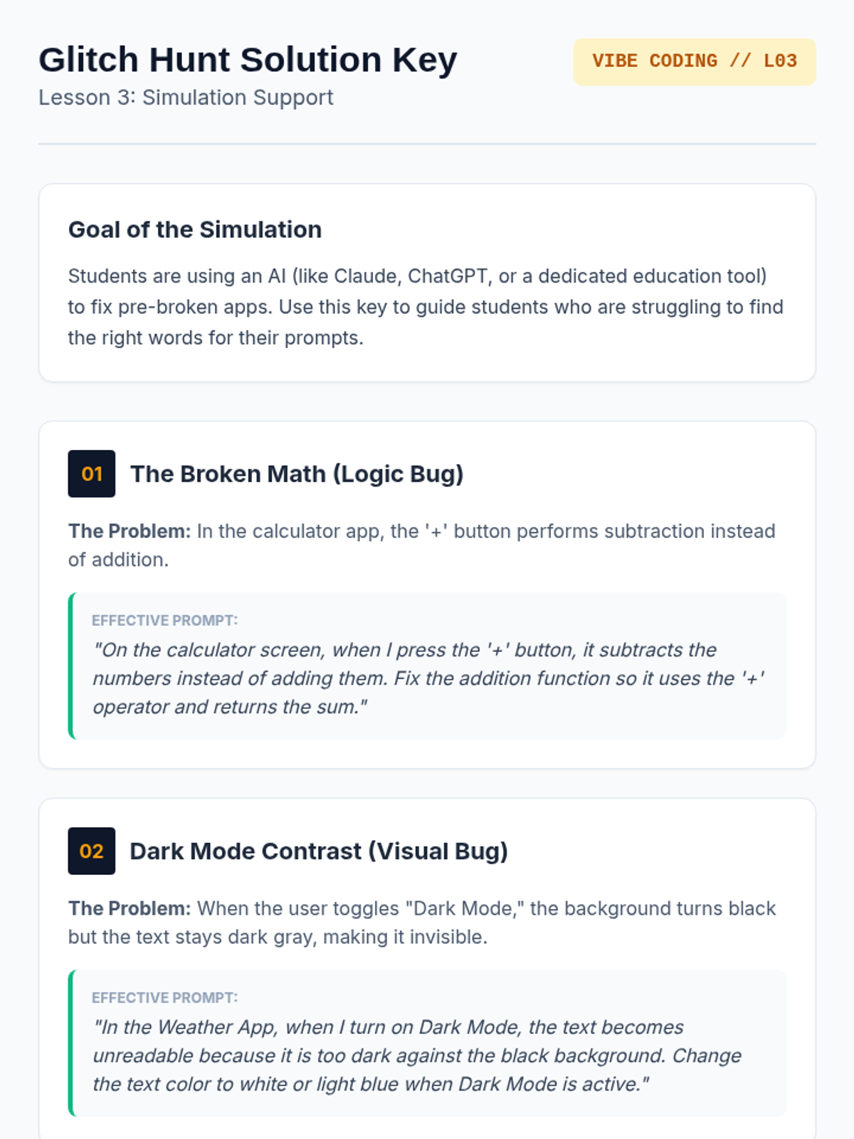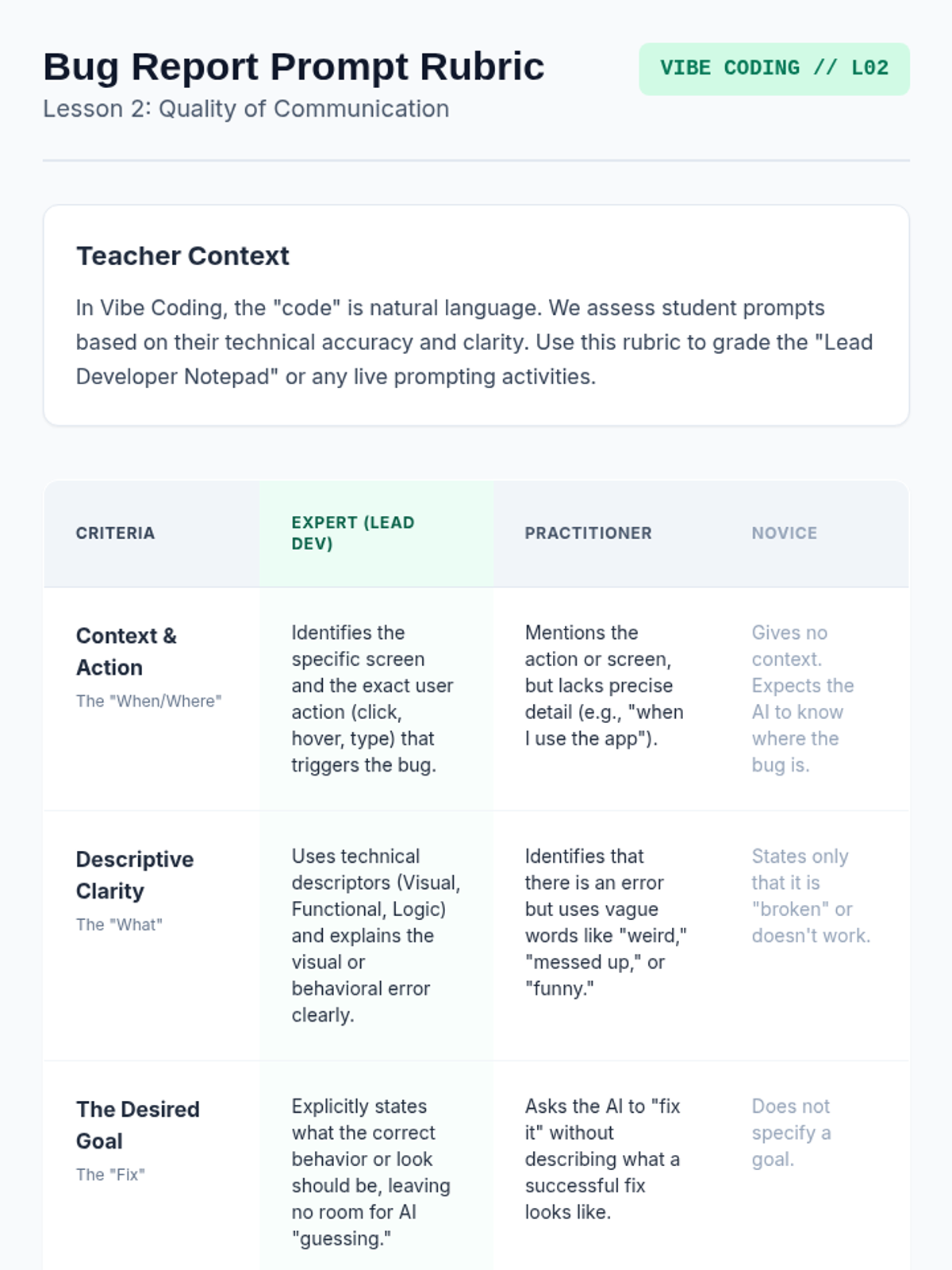 Students practice the art of the 'Bug Report.' They learn to write clear, descriptive prompts telling the AI exactly what went wrong and under what conditions.