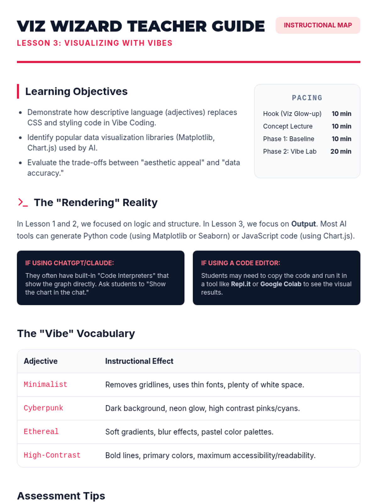 Students use descriptive language to apply CSS styling and experiment with visual vibes to match specific user experience goals.