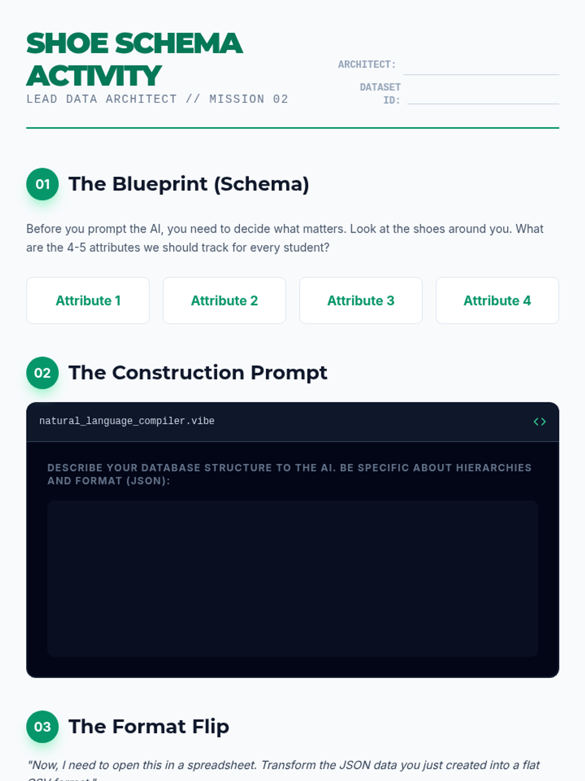 Students define the requirements for a simple web utility app and practice 'decomposition'—breaking big ideas into specific, promptable features.
