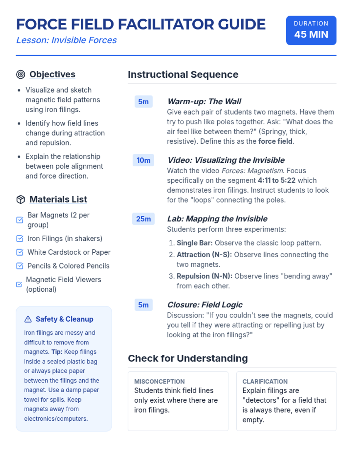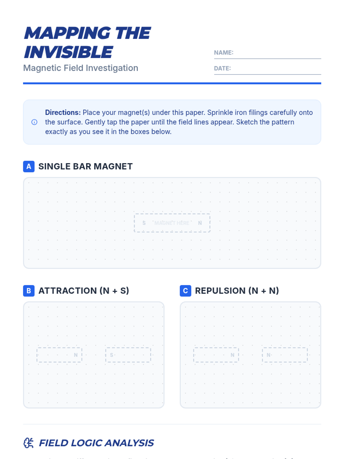 A hands-on investigation into magnetic fields and pole interactions where students use iron filings to visualize the 'invisible' forces around magnets.