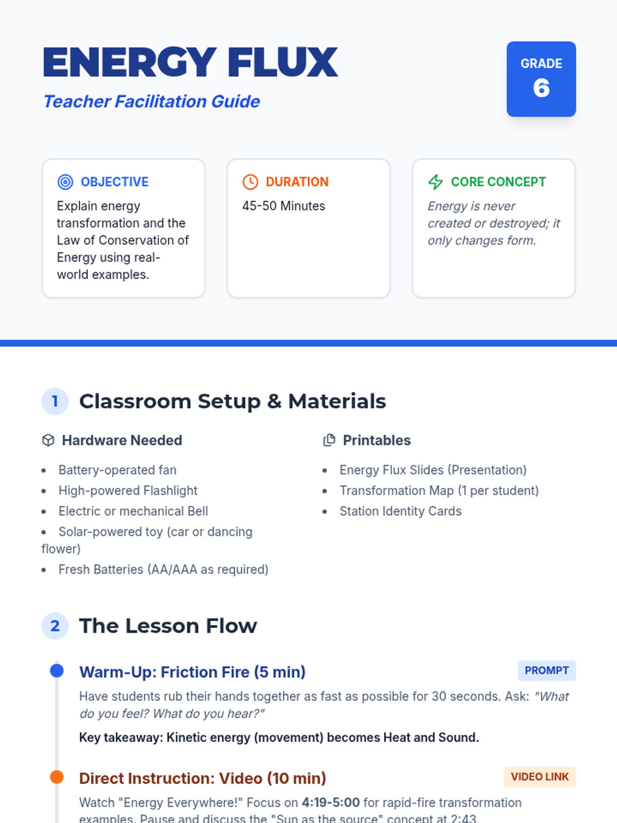 A high-energy exploration of how energy changes form but is never lost, featuring hands-on station rotations and a deep dive into the Law of Conservation of Energy.