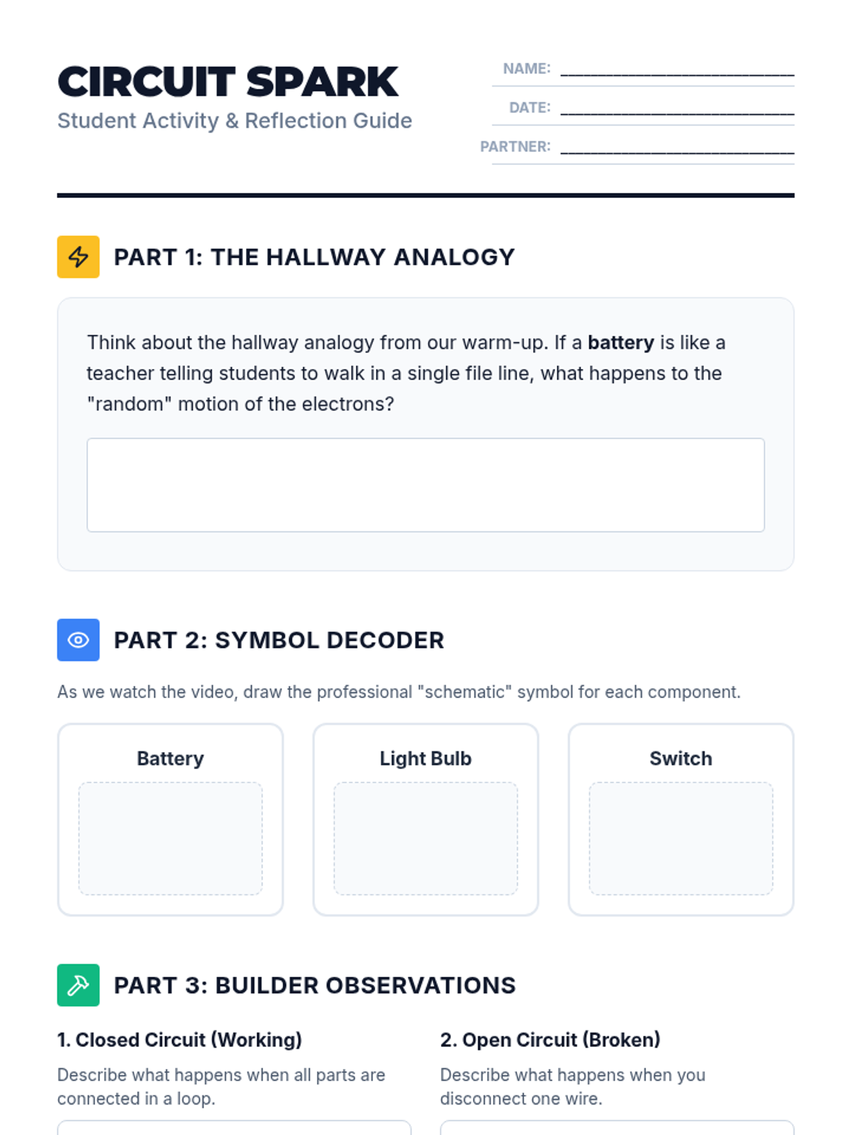 A hands-on exploration of series and parallel circuits where students build, test, and break circuits to understand independent paths of electricity.