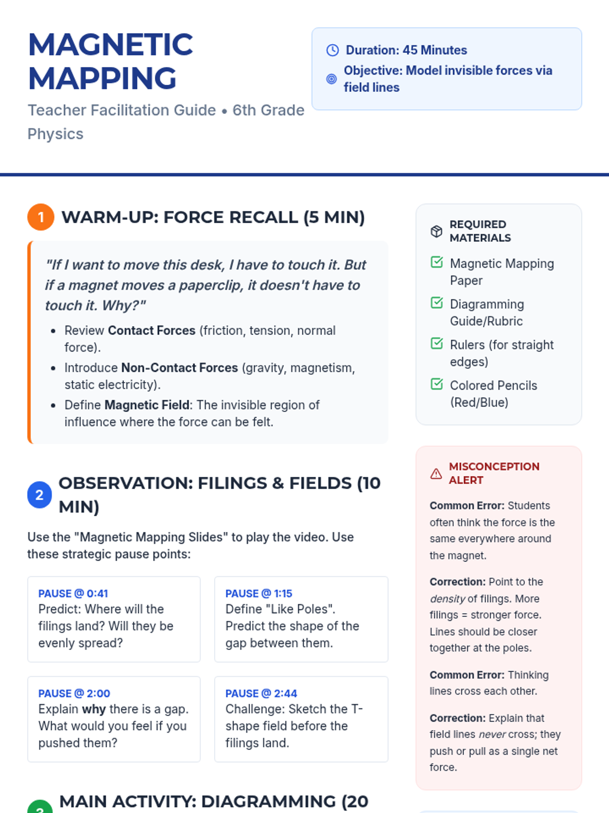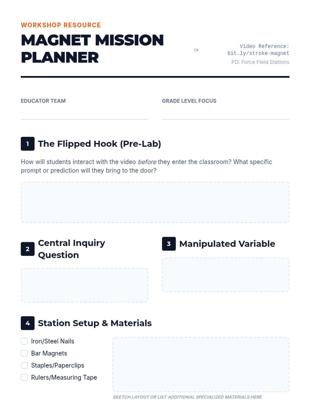 A professional development workshop for educators to master inquiry-based science instruction using simple magnetic phenomena. Teachers will analyze video prompts, identify experimental variables, and design a flipped classroom lesson with assessment rubrics.
