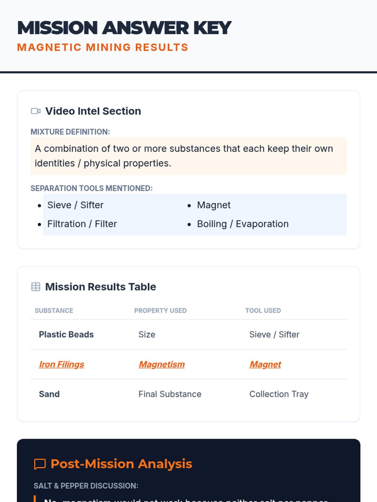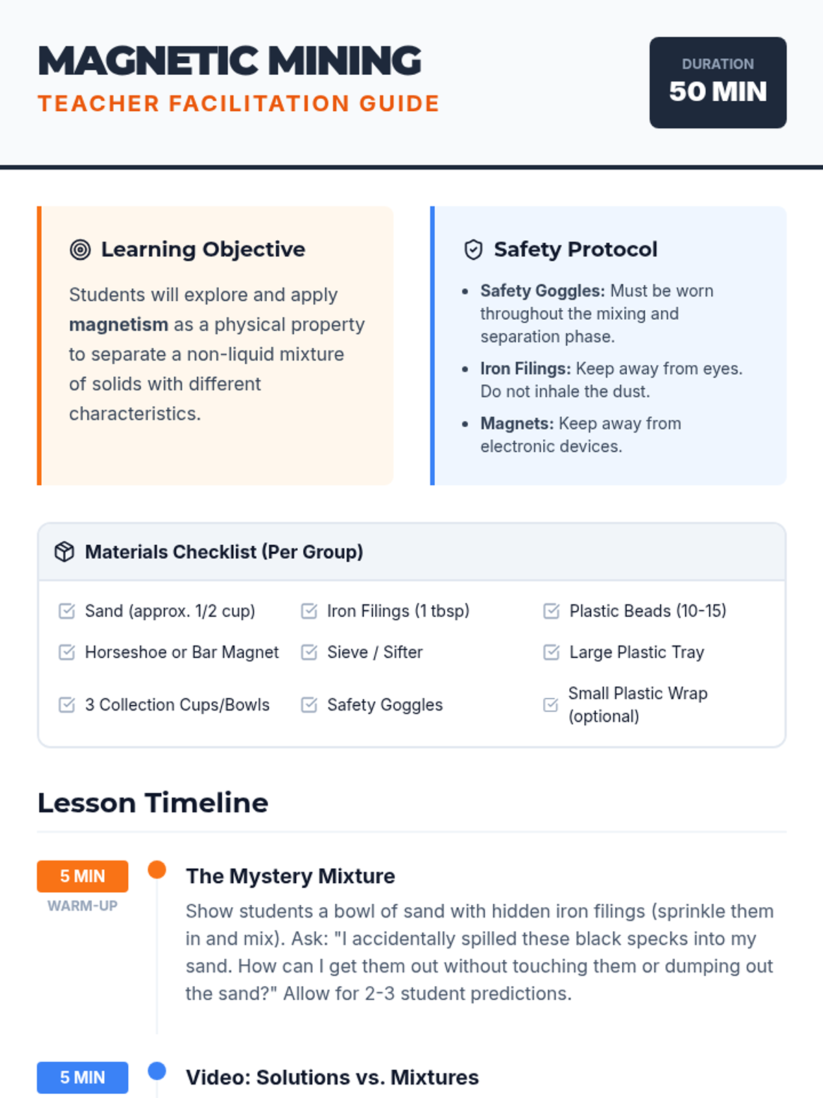 Students explore how to separate mixtures using physical properties, specifically focusing on magnetism. They engage in a hands-on activity to separate sand, iron filings, and plastic beads using sieves and magnets.