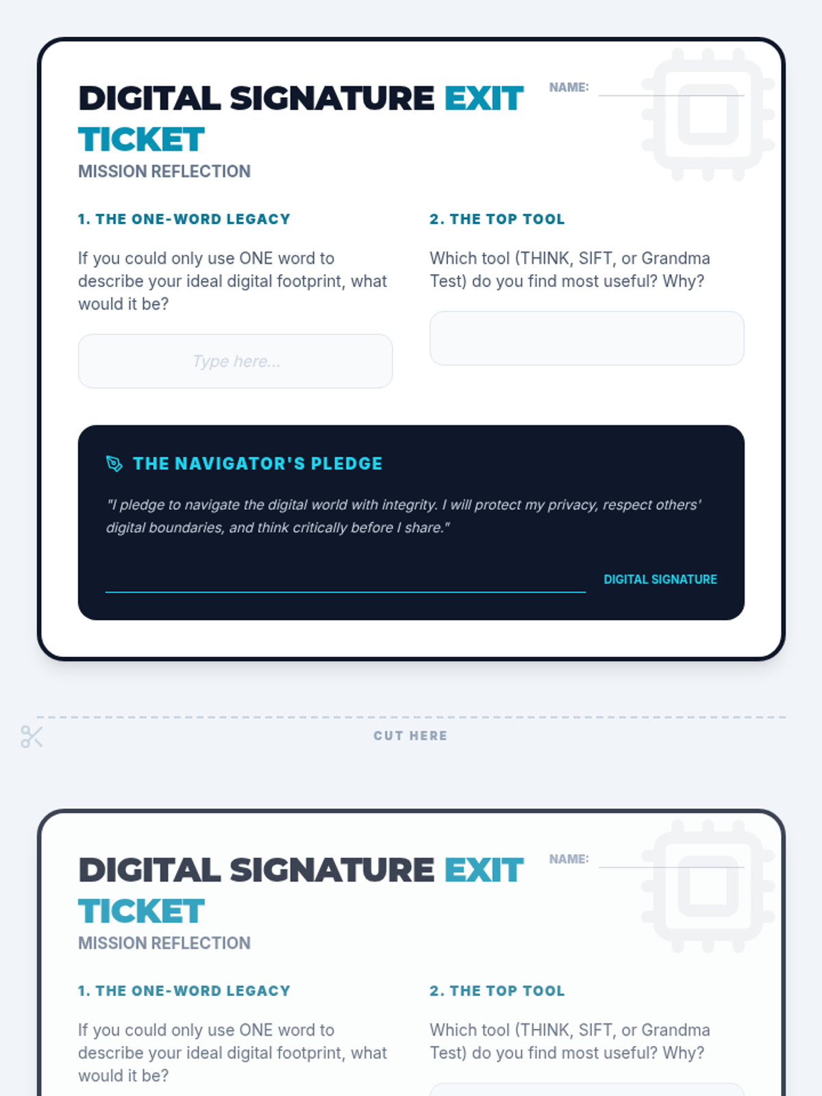 The culminating project where students synthesize their learning into a personal manifesto for ethical and safe technology use in their future lives.