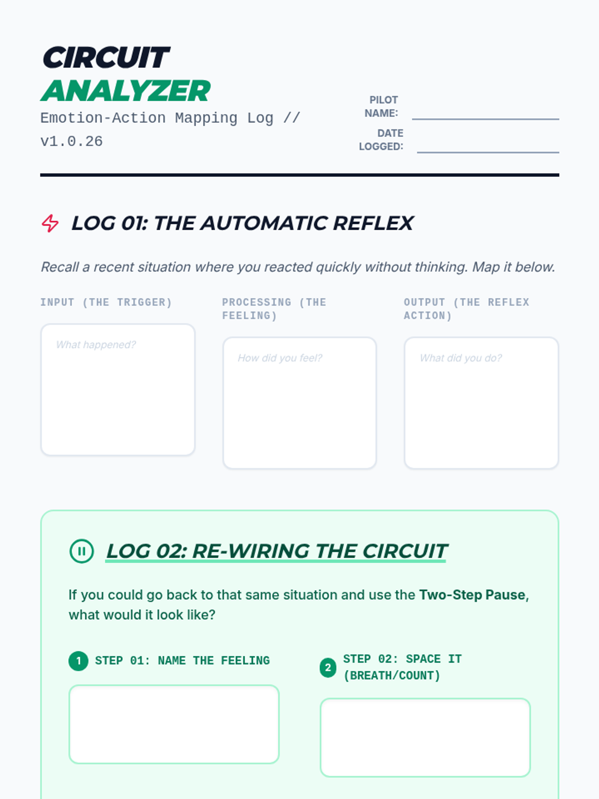 Students learn about the amygdala hijack and the physical signs of anger, mapping out their own physiological cues that signal a high-conflict state.