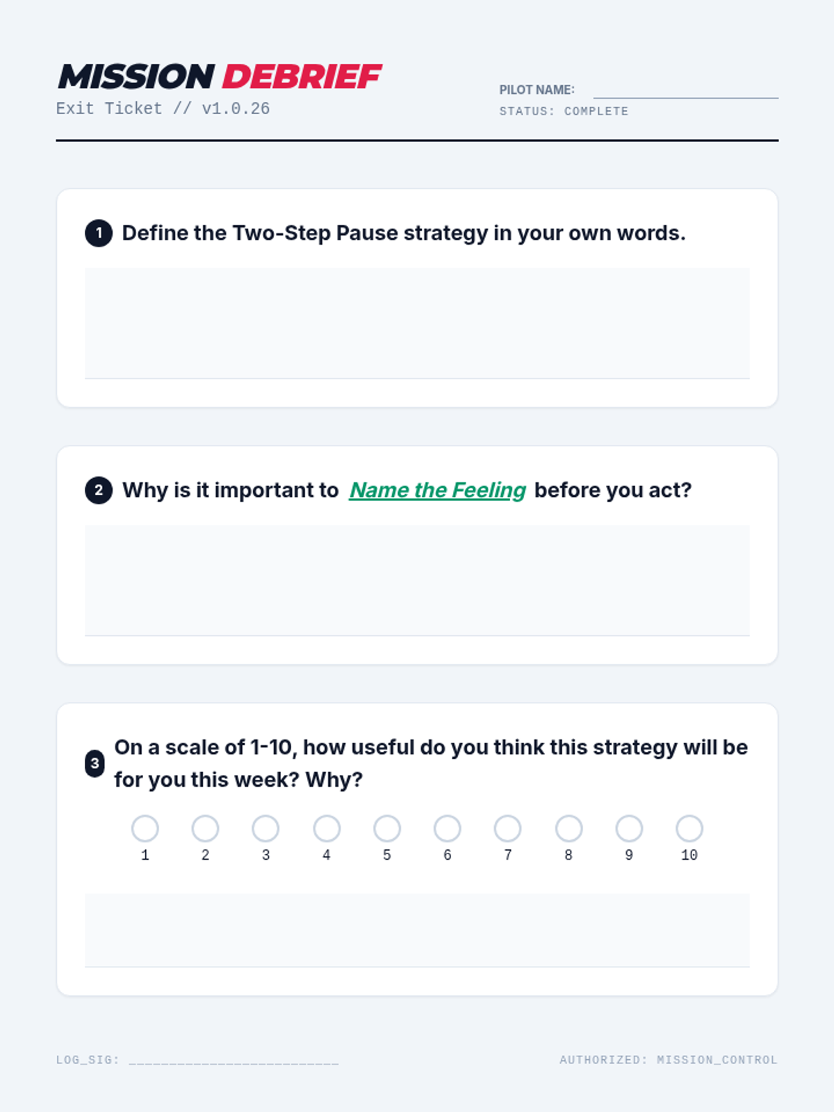 A comprehensive lesson designed to help teens understand their emotional triggers, recognize physical warning signs, and build a personalized toolkit of regulation strategies through guided reflection and daily planning.