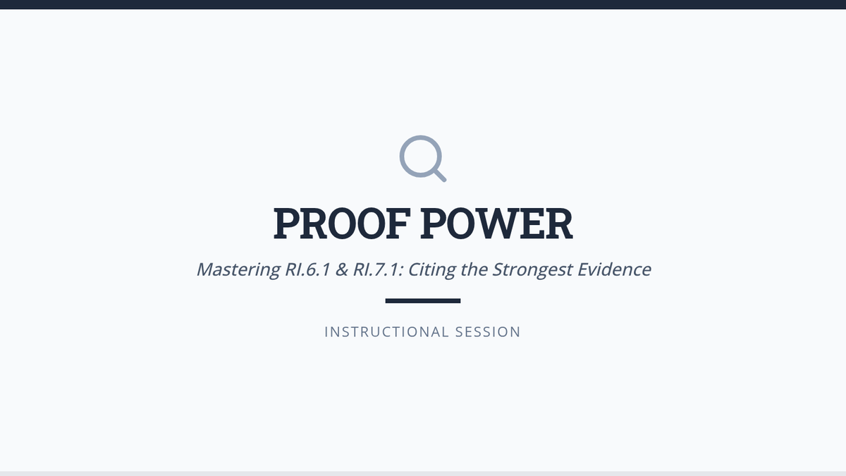 A final assessment where students apply all RI.8.2 skills to a new text in a 'Final Upload' scenario.