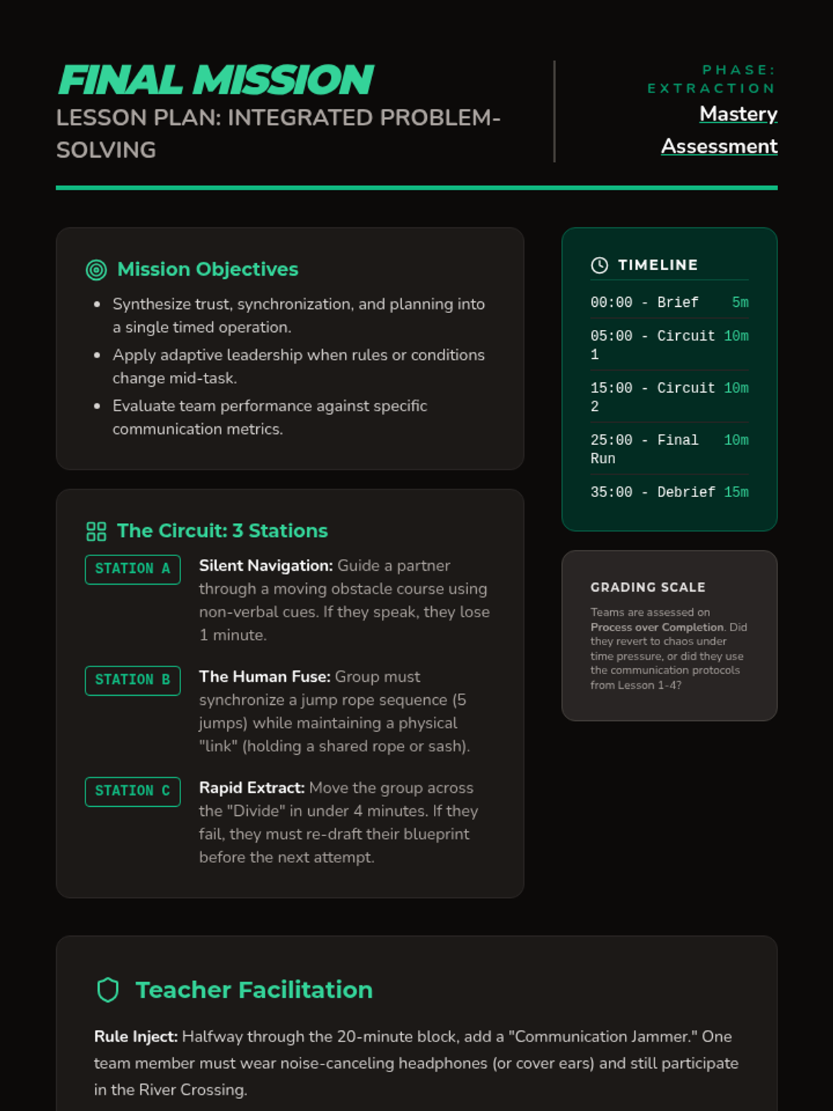A culminating circuit challenge where teams apply all previously learned communication and planning strategies under time pressure.