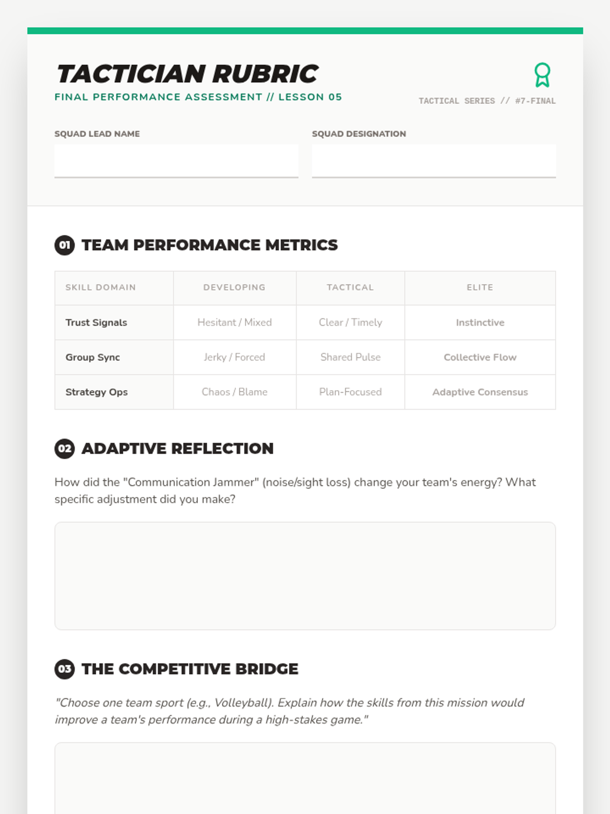 A high-energy team-building lesson focused on communication, trust, and collaboration through interactive challenges and a hockey-themed strategy game.