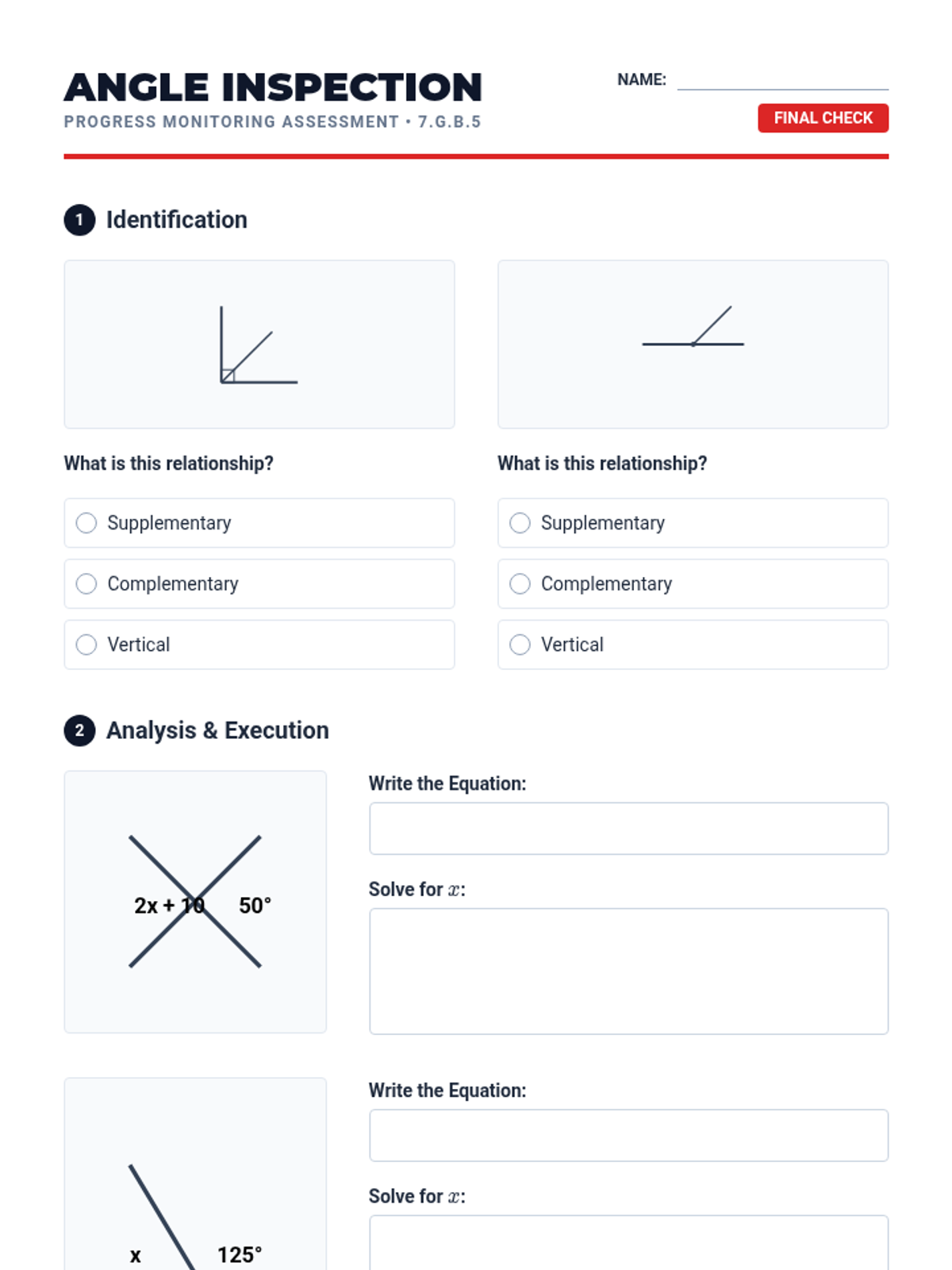 A Tier 2 small group intervention focusing on 7.G.B.5, using hands-on exploration and multi-step equation solving to master supplementary, complementary, vertical, and adjacent angle relationships.