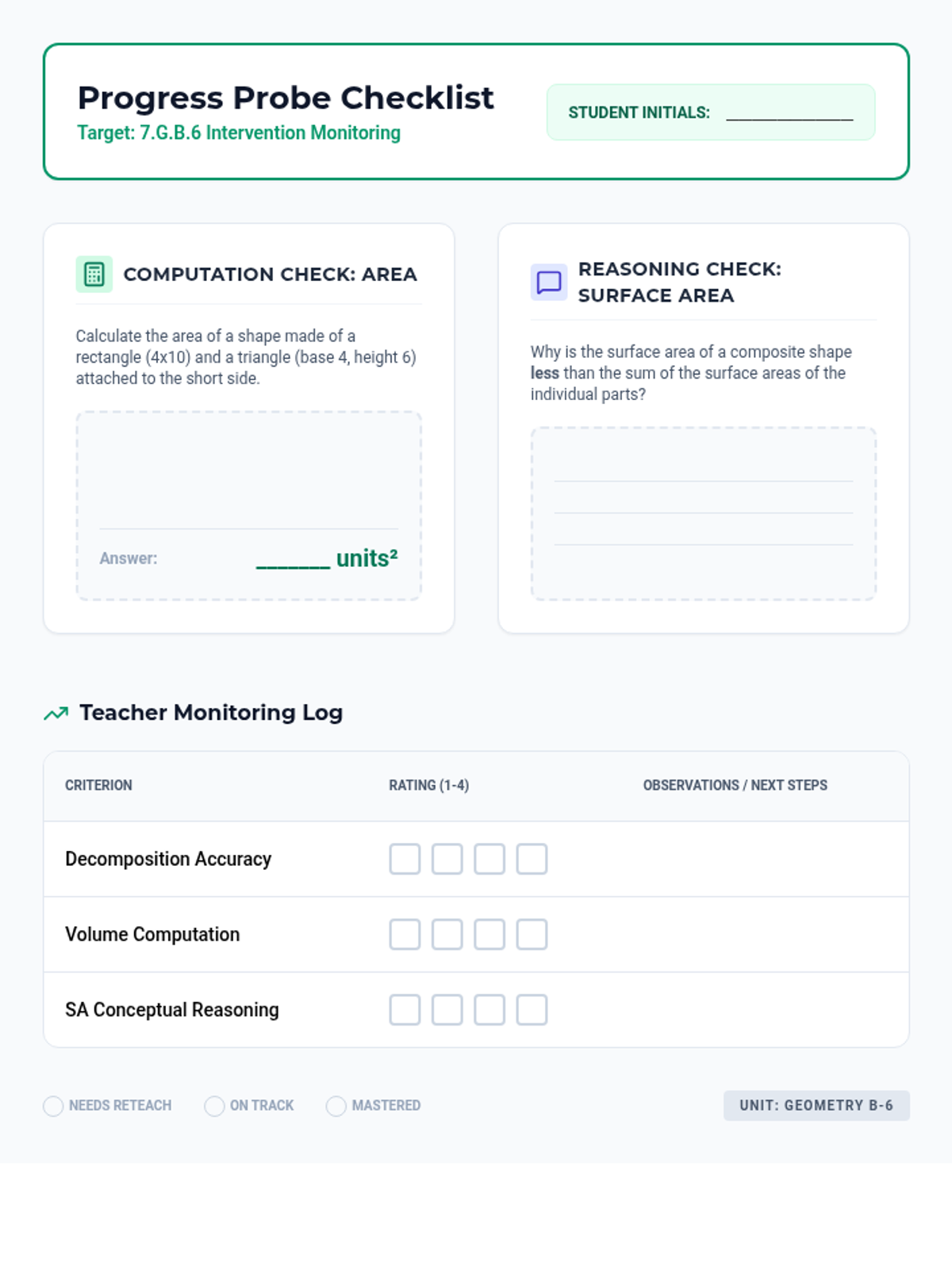 A targeted Tier 2 intervention lesson focusing on calculating the area, surface area, and volume of 2D and 3D composite shapes. This lesson uses hands-on building, visual formulas, and scaffolded practice to bridge gaps in geometric understanding.