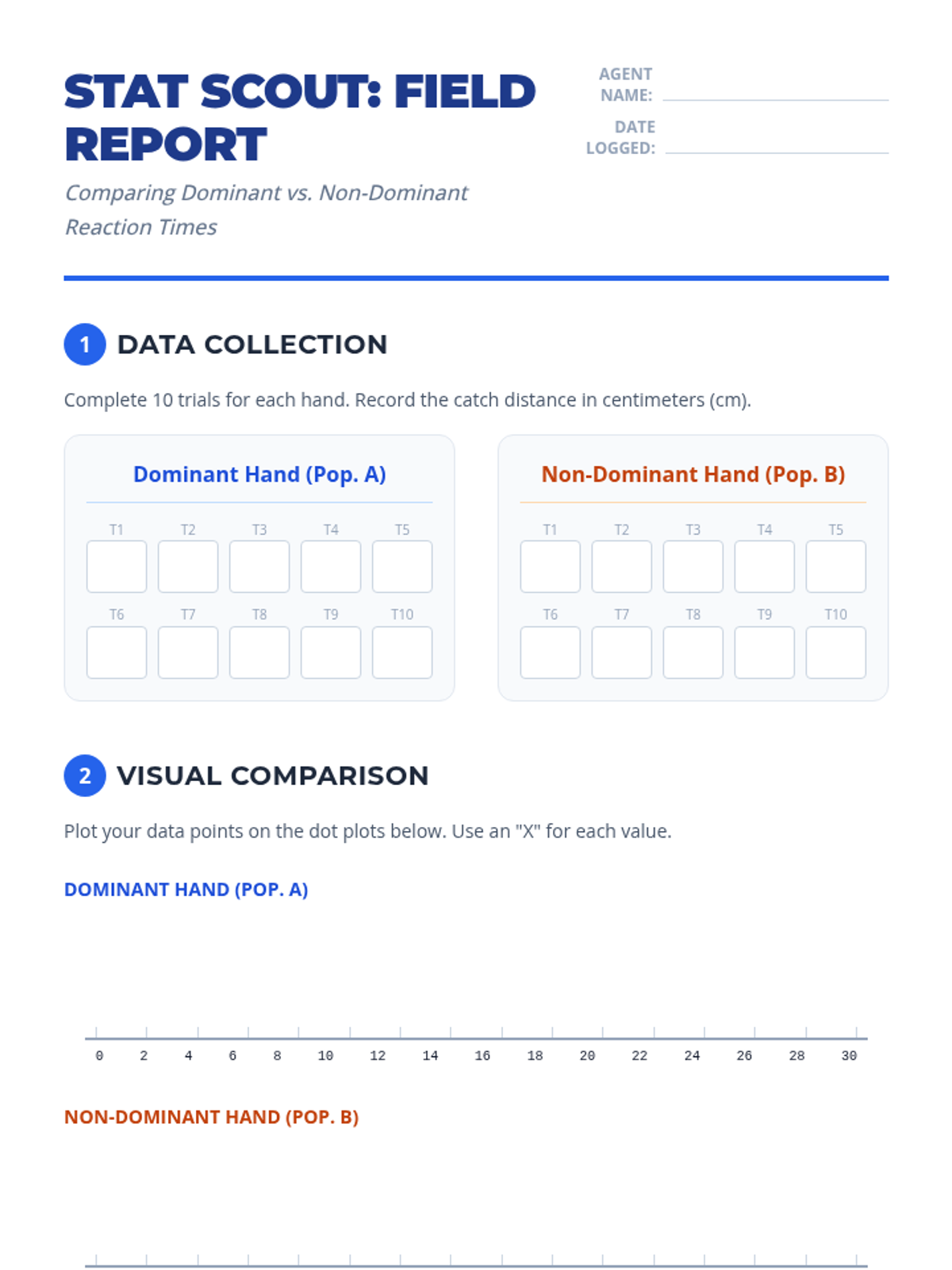A targeted intervention lesson focusing on comparing two data distributions using back-to-back dot plots, visual overlap, and measures of center and variability. Students will gain hands-on experience calculating differences in means relative to the Mean Absolute Deviation (MAD).