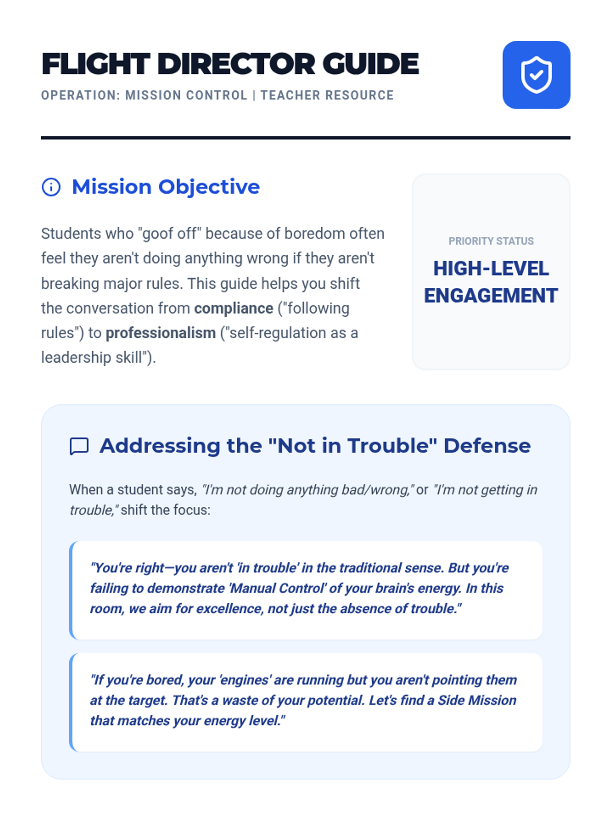 A lesson focused on self-regulation and managing boredom in the classroom, framed through the lens of being the "commander" of one's own focus and actions.