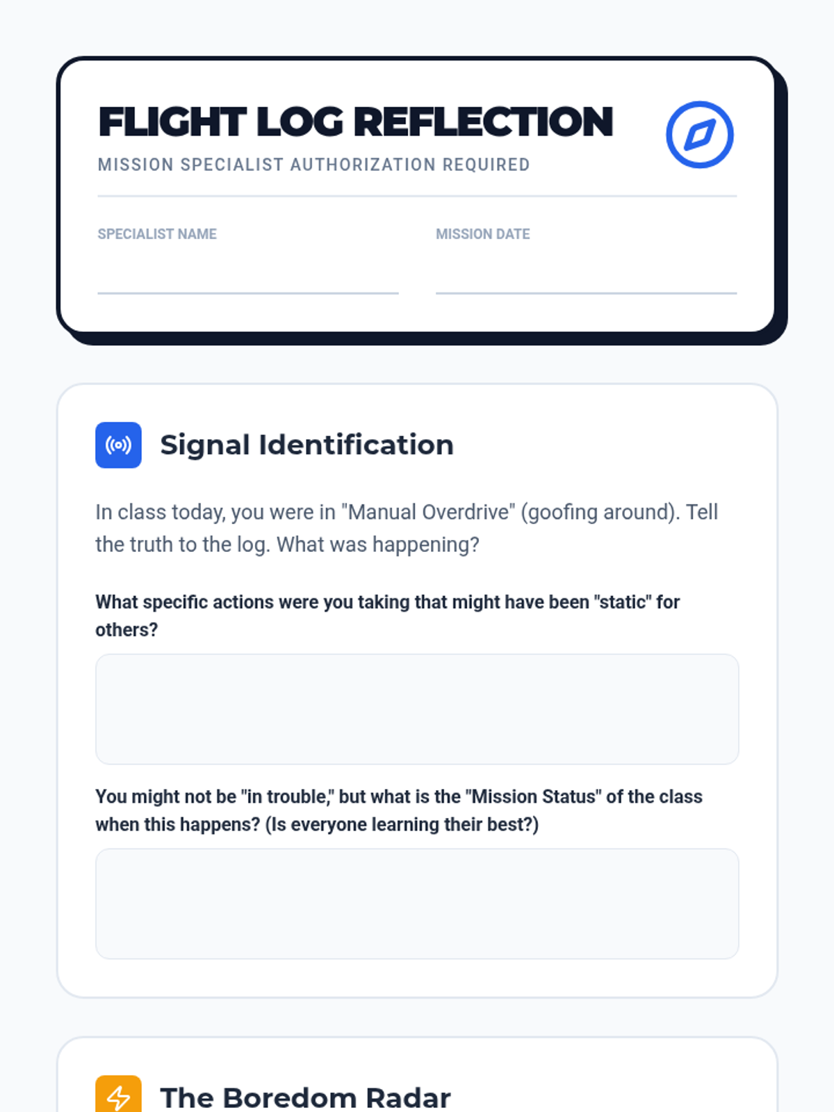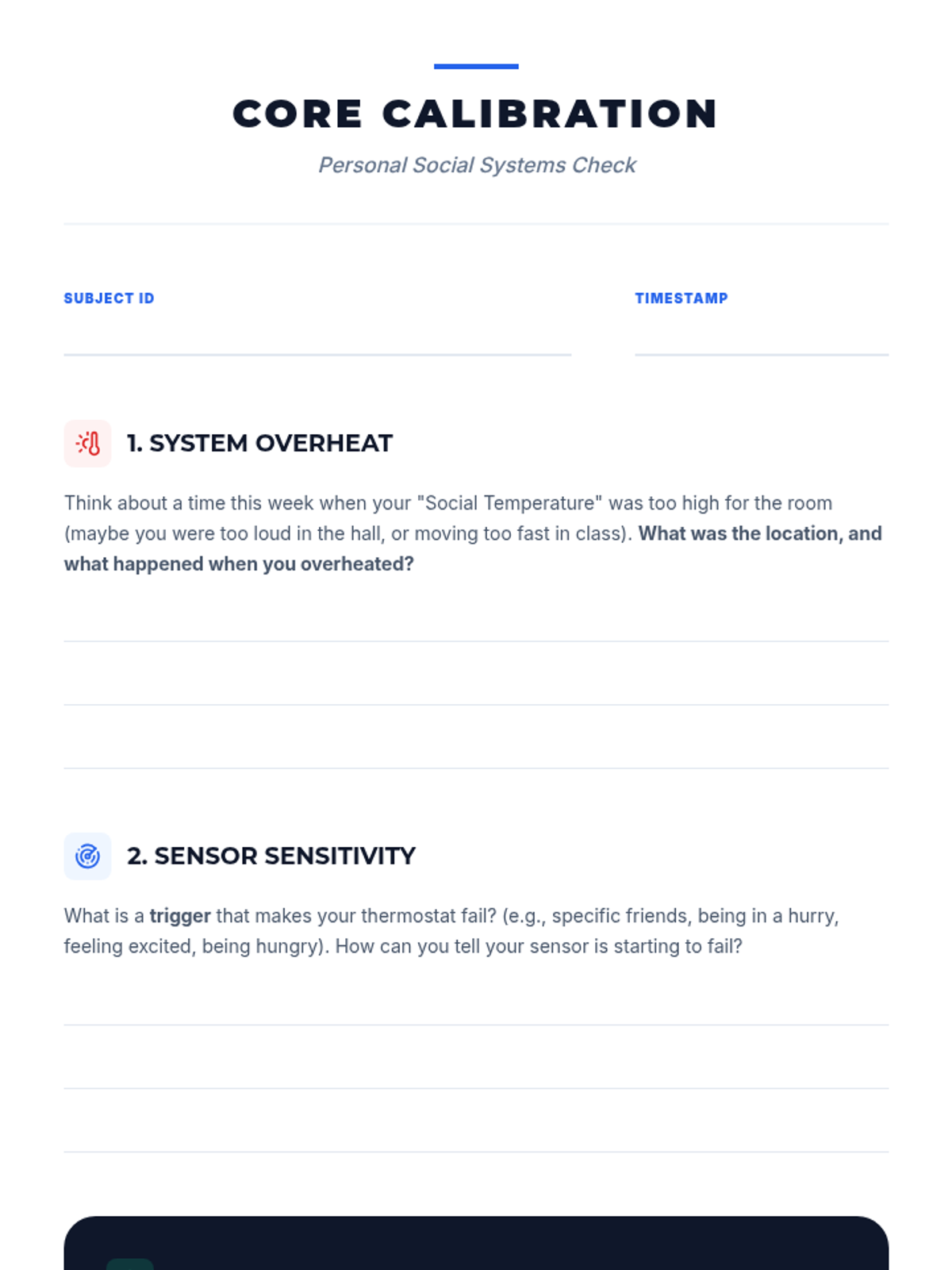 A social-emotional lesson focused on identifying internal signals of anxiety and selecting appropriate self-regulation tools. Students will learn to recognize 'glitches' in their system and deploy 'countermeasures' to stay on track.