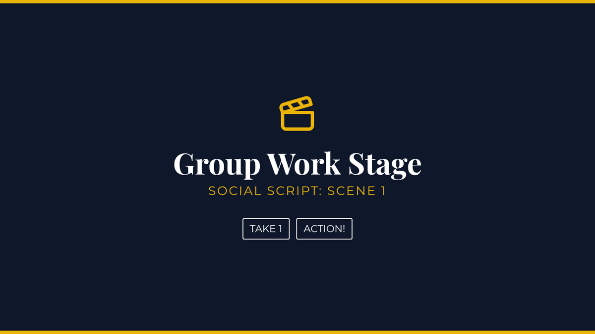 The sequence culminates in live social simulations where students use their learned scripts to navigate random peer scenarios and provide constructive feedback.