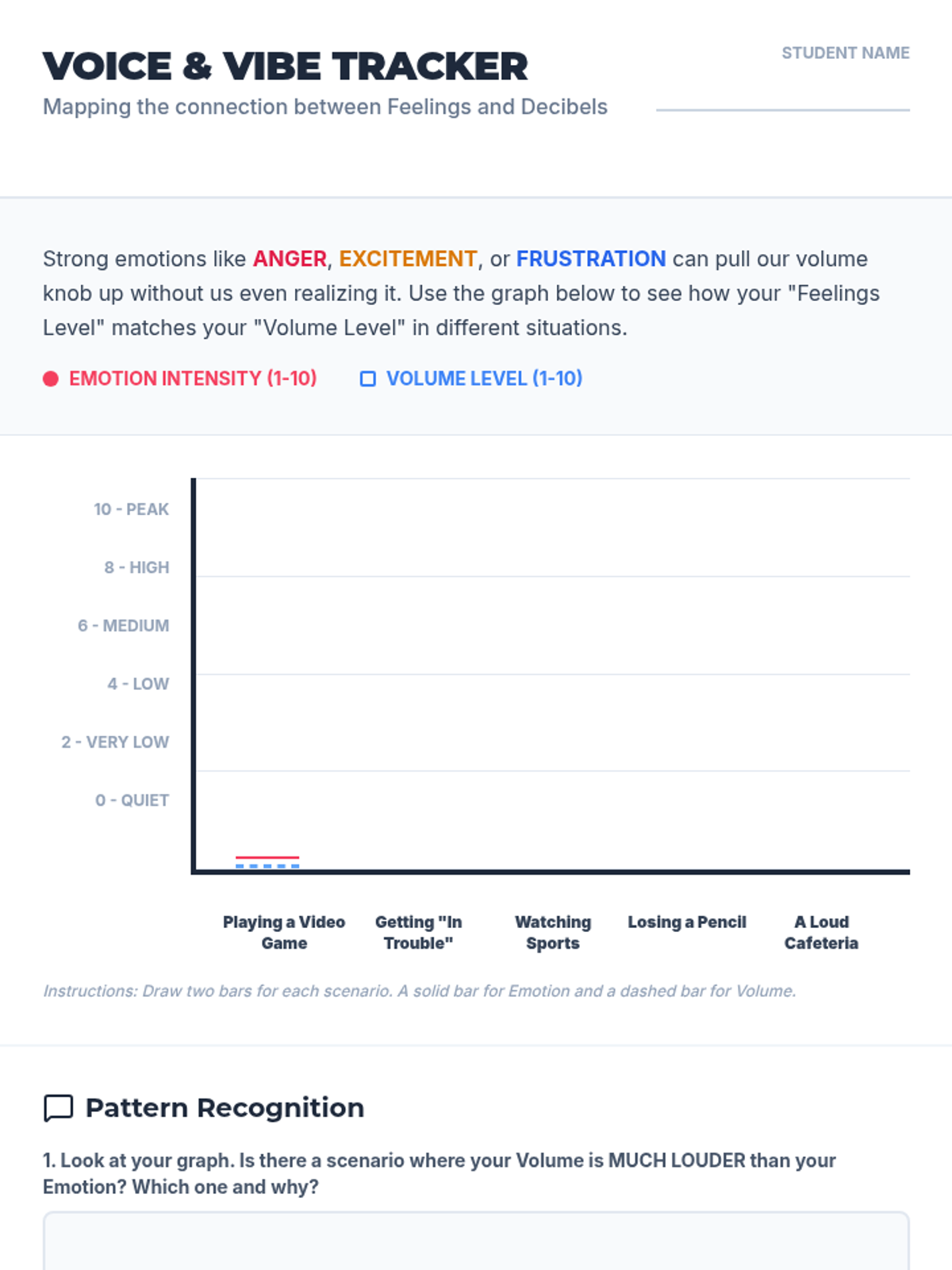 Students analyze the link between high-arousal emotions (anger, excitement, fear) and increased volume. They graph their own typical reactions to see patterns in their behavior.